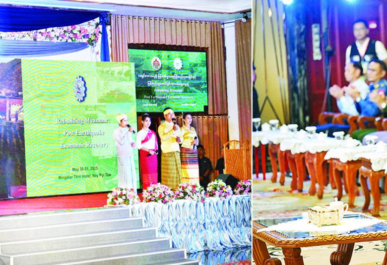 ဦးစွာ အခမ်းအနားအား “ပြန်လည်ထူထောင်ရေး” သီချင်းဖြင့် ဂုဏ်ပြုဖွင့်လှစ်ပြီး “မြေငလျင်ဘေးအလွန် အကျပ်အတည်းများအကြားမှ စီးပွားရေးအခွင့်အလမ်းများ ရှာဖွေဖော်ထုတ်ကာ ကျော်လွှားကြမည်” Video Clip ကို ကြည့်ရှုကြသည်။