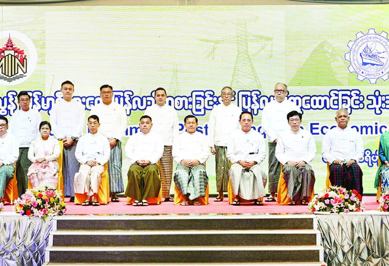 အလားတူ ၂၀၂၃ ခုနှစ်တွင် မိုခါမုန်တိုင်း၊ ၂၀၂၄ ခုနှစ် ရာဂီမုန်တိုင်း တိုက်ခတ်မှုနှင့် မိုးသည်းထန်စွာရွာသွန်းခဲ့မှုကြောင့် ရေကြီးရေလျှံမှုများနှင့် သဘာဝဘေးဒဏ်များကိုခံစားခဲ့ရကြောင်း၊ ယခုနှစ် မတ် ၂၈ ရက်တွင်ဖြစ်ပွားခဲ့သည့် မန္တလေးငလျင်ကြီးလှုပ်ခတ်ခဲ့မှုကြောင့် ထိခိုက်ပျက်စီးမှုများဖြစ်ပေါ်ခဲ့ကြောင်း၊ ငလျင်ဘေးဒဏ်ခံစားခဲ့ရသည့်ဒေသများတွင် မန္တလေးတိုင်းဒေသကြီး၌ ထိခိုက်ပျက်စီးမှုပိုမိုများပြားခဲ့ကြောင်း၊ မန္တလေးတိုင်းဒေသကြီးသည် မိမိတို့နိုင်ငံ၏ ဒုတိယစီးပွားရေးအကြီးဆုံး မြို့တော်ဖြစ်ကြောင်း၊ ၎င်းဒေသ၌ အလတ်စားအဆင့် ဘိလပ်မြေနှင့် သံမဏိထုတ်လုပ်ခြင်းများရှိပြီး ငလျင်ကြောင့် ထိခိုက်ခဲ့ရကြောင်း၊ ဘိလပ်မြေနှင့်သံမဏိများသည် ပြန်လည်တည်ဆောက်ရေးလုပ်ငန်းများအတွက် အဓိကလိုအပ်သည့် ပစ္စည်းများဖြစ်၍ အမြန်ဆုံးပြန်လည်ပြုပြင်၍ လည်ပတ်နိုင်ရေး မိမိတို့အနေဖြင့် စီမံဆောင်ရွက်ခဲ့ကြောင်း၊ ထိုအချိန်တွင် ဘိလပ်မြေဈေးများမှာ မြင့်တက်လာသဖြင့် မိမိတို့အနေဖြင့် ထိန်းသိမ်းဆောင်ရွက်ခဲ့ရကြောင်း၊ သံနှင့်ပတ်သက်၍လည်း ဆောက်လုပ်ရေးလုပ်ငန်းသုံး သံချောင်းများအား ပြည်တွင်း၌ လုံလောက်စွာထုတ်လုပ်နိုင်မှုမရှိသေးသဖြင့် ပြည်ပနိုင်ငံများမှ အကူအညီများရရှိနိုင်ရေး မိမိအနေဖြင့် အသိပေးဆောင်ရွက်ခဲ့ခြင်းများရှိကြောင်း။