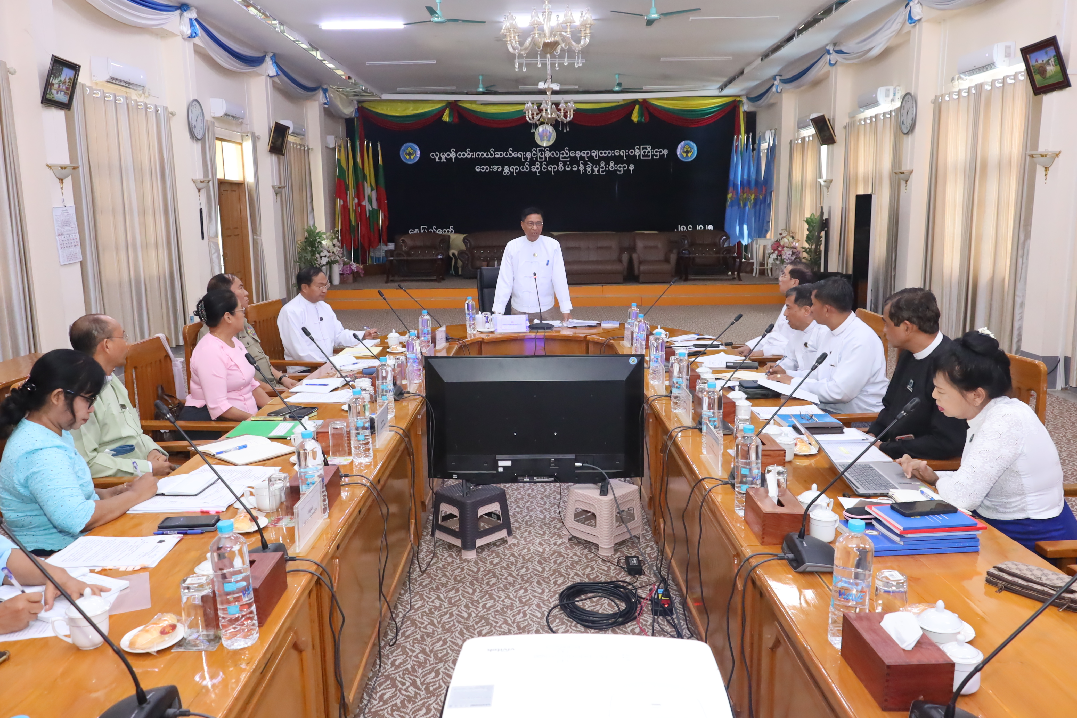 ထို့နောက် ဘေးအန္တရာယ်ဆိုင်ရာ စီမံခန့်ခွဲမှုဦးစီးဌာန ညွှန်ကြားရေးမှူးချုပ်က ငလျင်ဘေးဖြစ်ပွားပြီး ကာလအတွင်း အမျိုးသားသဘာဝဘေးအန္တရာယ်ဆိုင်ရာ စီမံခန့်ခွဲမှုရန်ပုံငွေ၏ ရရှိ၊သုံးစွဲ၊ လက်ကျန် အခြေအနေ၊ ယခင်ကာလများတွင် ဖြစ်ပွားခဲ့သော ဘေးအန္တရာယ်များအတွက် ပြည်တွင်း၊ ပြည်ပမှ အကူအညီ၊ အထောက်အပံ့ရရှိခဲ့မှု အခြေအနေများကို ဆွေးနွေးတင်ပြပြီး တက်ရောက်လာသူများမှ အကူအညီ၊ အထောက်အပံ့ရရှိနိုင်ရေး ဆောင်ရွက်ရမည့် နည်းလမ်းများကို ဝိုင်းဝန်းအကြံပြုဆွေးနွေးကာ အစည်းအဝေးကို ရုပ်သိမ်းလိုက်ကြောင်း သတင်းရရှိသည်။