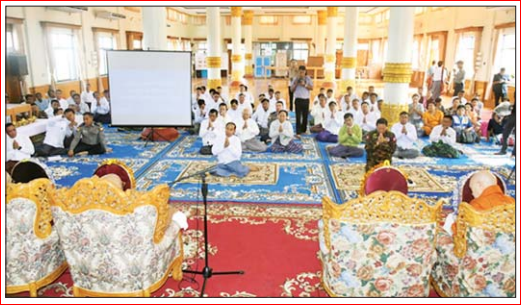 ဦးစွာ တိုင်းဒေသကြီး ဝန်ကြီးချုပ်၊ ဒုတိယ ဗိုလ်ချုပ်ကြီး သက်ပုံနှင့် တက်ရောက်လာကြသူ များက သီတဂူဆရာတော်ကြီးထံမှ ငါးပါးသီလ ခံယူဆောက်တည်ကြပြီး သံဃာတော်များ ရွတ်ပွား ချီးမြှင့်တော်မူသည့် ပရိတ်တရားတော်များကို နာယူကြည်ညိုကြသည်။ ထို့နောက် တိုင်းဒေသကြီး ဝန်ကြီးချုပ်၊ ဒုတိယဗိုလ်ချုပ်ကြီး သက်ပုံနှင့် တာဝန် ရှိသူများက သံဃာတော်များအား လှူဖွယ်ပစ္စည်း များ ဆက်ကပ်လှူဒါန်းကြသည်။ ယင်းနောက် တိုင်းဒေသ ကြီး ဝန်ကြီးချုပ်၊ ဒုတိယဗိုလ်ချုပ်ကြီး သက်ပုံ နှင့် တာဝန်ရှိသူတစ်ဦးတို့က ငလျင်ဒဏ်ကြောင့် ပြိုကျပျက်စီးမှုများကို တပ်မတော်သားများ၊ မြန်မာ နိုင်ငံ ရဲတပ်ဖွဲ့ဝင်များ၊ မြန်မာနိုင်ငံမီးသတ်တပ်ဖွဲ့ဝင် များနှင့် စေတနာရှင် ပြည်သူများက စုပေါင်းဖယ်ရှား ရှင်းလင်းပြီးစီးမှုများနှင့် ဘက်စုံပြုပြင် မွမ်းမံ ပြင်ဆင်တည်ဆောက်မည့် လုပ်ငန်းအစီအမံများကို ဆရာတော်ကြီးများထံ ရှင်းလင်းလျှောက်ထား တင်ပြကြပြီး ဩဝါဒခံယူခဲ့ကြကြောင်း သတင်းရရှိသည်။