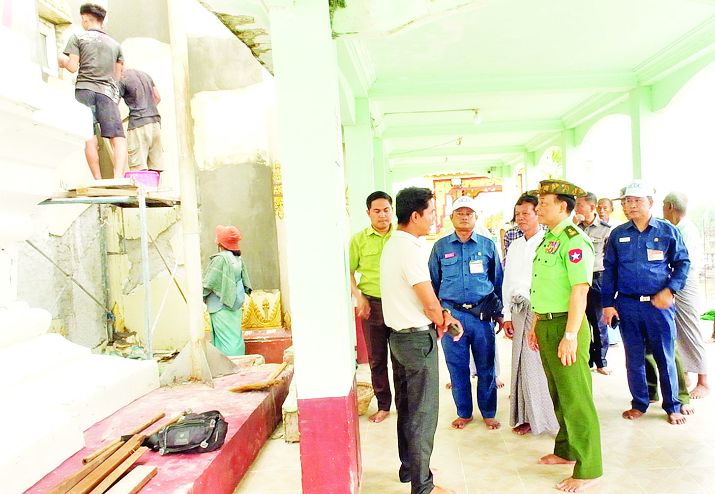 အလားတူ ကာကွယ်ရေးဦးစီးချုပ်ရုံး(ကြည်း)မှ ဒုတိယဗိုလ်ချုပ်ကြီး စိုးတင့်နိုင်နှင့် တာဝန်ရှိသူများသည် ငလျင်ဒဏ်ကြောင့် ထိခိုက်ပျက်စီးမှုများဖြစ်ပေါ်ခဲ့သည့် မန္တလေးမြို့ အမရပူရမြို့နယ်ရှိ ရွှေကြက်ယက် ဆုတောင်းပြည့်မြတ်စွာဘုရား၊ ရွှေကြက်ကျဆုတောင်း ပြည့်မြတ်စွာဘုရား၊ နန်းဦးကျောင်းတိုက်နှင့် အောင်မြေသာစံမြို့နယ် ဥပုသ်တော်ရပ်ကွက်ရှိ အဘယာရာမ မိုးထိကျောင်းတိုက်များသို့ သွားရောက်၍ ငလျင်ဒဏ်ကြောင့် ထိခိုက်ပျက်စီးခဲ့သော ဘုရားစေတီများနှင့် သာသနိကအဆောက်အအုံများရှိ အပျက်အစီးများအား ဖယ်ရှားရှင်းလင်းဆောင်ရွက်နေမှု၊ ပြန်လည်ပြုပြင်ရေးလုပ်ငန်းများ ဆောင်ရွက် နေမှုများနှင့် ရှေးမူမပျက် ပြင်ဆင်ဆောင်ရွက်နေမှုများကို ကြည့်ရှုစစ်ဆေးပြီး လုပ်ငန်းများအမြန်ဆုံး ပြီးစီးဆောင်ရွက်နိုင်ရန် တာဝန်ရှိသူများနှင့် လိုအပ်သည်များ ပေါင်းစပ်ညှိနှိုင်းဆောင်ရွက်ပေးသည်။