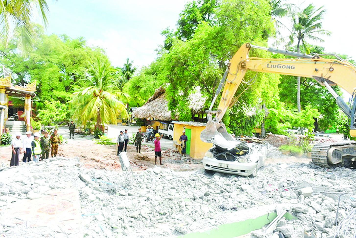 ထို့နောက် အောင်မြေသာစံမြို့နယ်ရှိ Sky Villa နေရာသို့သွားရောက်၍ ငလျင်ဒဏ်ကြောင့် ထိခိုက်ပျက်စီးခဲ့သည့် ရှင်းလင်းရန်ကျန် (A) ဆောင်အား စက်ယန္တရားကြီးများအသုံးပြု၍ အပျက်အစီး များ ဖယ်ရှားရှင်းလင်းနေမှုအခြေအနေများအားလည်းကောင်း၊ လုပ်ငန်းခွင်အနီးရှိ ပစ္စည်းလက်ခံ/ ထုတ်ပေးရေးအဖွဲ့ ယာယီရုံးတွင် ရှာဖွေတွေ့ရှိသော ပစ္စည်းများအား စနစ်တကျထိန်းသိမ်းထားရှိမှုနှင့် သက်ဆိုင်ရာပိုင်ရှင်အသီးသီးထံ စနစ်တကျလွှဲပြောင်း ပေးနိုင်မှုအခြေအနေများအား ကြည့်ရှုစစ်ဆေးပြီး တာဝန်ရှိသူများ၏ တင်ပြချက်များအပေါ် လိုအပ်သည်များ ပေါင်းစပ်ညှိနှိုင်းဆောင်ရွက်ပေးသည်။