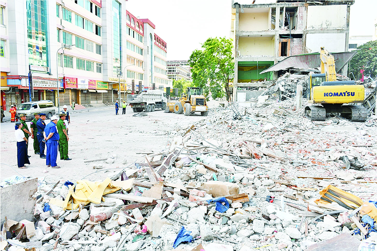 ကျောက်ဆည်ခရိုင်အတွင်း ငလျင်ဒဏ်သင့် အဆောက်အအုံများအား SOP စနစ် ဖြင့် ဘုတ်အဖွဲ့ များ ဖွဲ့စည်းစစ်ဆေးခဲ့ရာ ယနေ့အထိအဆောက်အအုံ ၁၁၆၇ လုံးအား စစ်ဆေးခြင်းဆောင်ရွက်ခဲ့ပြီး ဦးစား ပေးဖြိုဖျက်ရှင်းလင်းရမည့်အန္တရာယ်ရှိ အဆောက်အအုံ ၂၃၃ လုံး၊ ပြန်လည်ပြုပြင်နိုင်မည့် အဆောက်အအုံ လုံး ၈၃၀၊ အန္တရာယ်ရှိအဆောက်အအုံများမှ ၁၆၁ လုံး ရှင်းလင်းဆောင်ရွက်နိုင်ခဲ့ပြီး ဆောင်ရွက်ရန် ကျန် အဆောက်အအုံ ၇၂ လုံးဖြစ်ကြောင်း သိရသည်။