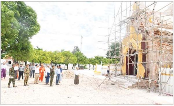 အလားတူ ကာကွယ်ရေးဦးစီးချုပ်ရုံး(ကြည်း)မှ ဒုတိယဗိုလ်ချုပ်ကြီး စိုးတင့်နိုင်နှင့် တာဝန်ရှိသူများသည် မန္တလေးမြို့ အောင်မြေသာစံမြို့နယ်ရှိ နန်းမြို့ရိုး၌ ငလျင်ဒဏ်ကြောင့် ထိခိုက်ပျက်စီးခဲ့သော ကျုံးအနောက်ဘက်ရှိ စည်ရှည်တံခါးအား ရှေးမူမပျက် ပြန်လည်ပြုပြင်မွမ်းမံနေမှု၊ မြို့ရိုးအတွင်းဘက်ရှိလှေကားများအား ပြန်လည်ပြုပြင်ရန် ဆောင်ရွက်ထားရှိမှု၊ အောင်မြေသာစံ မြို့နယ် အနှိပ်တော် ရပ်ကွက်ရှိ Sky Villa နေရာ၌ အပျက်အစီးများကို စက်ယန္တရားကြီးများ အသုံးပြု၍ အပြီးသတ် ဖယ်ရှား ရှင်းလင်းနေမှု၊ ချမ်းအေးသာစံမြို့နယ် စိတ္တရမဟီ ရပ်ကွက်နှင့် အောင်မြေသာစံမြို့နယ် အနှိပ်တော် ရပ်ကွက်များရှိ ငလျင်ဒဏ်ကြောင့် ထိခိုက်ပျက်စီးခဲ့ သည့် အန္တရာယ်ရှိ အဆောက်အအုံများကို စက်ယန္တရားကြီးများ အသုံးပြု၍ ရှင်းလင်းဆောင် ရွက်နေမှုများကို ကြည့်ရှုစစ်ဆေးပြီး လိုအပ်သည်များ ပေါင်းစပ်ညှိနှိုင်း ဆောင်ရွက်ပေးခဲ့ကြောင်း သတင်းရရှိသည်။