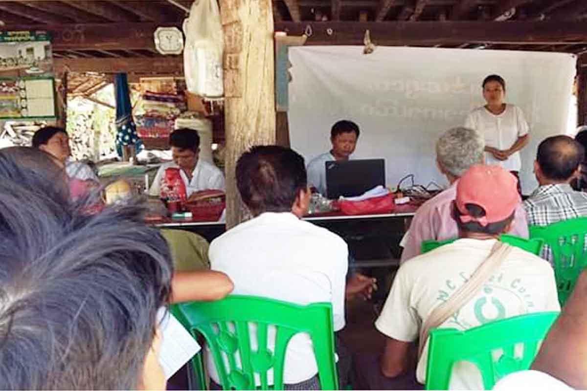 မကွေးတိုင်းဒေသကြီး သရက်ခရိုင် အောင်လံမြို့နယ်အတွင်းရှိ ဖူးစားပြောင်း အဓိကစိုက်ပျိုးရာပြလို့ တိုက်နယ် ထောက်ကြံတိုင်းကျေးရွာအုပ်စုမှ တောင်သူများအား ဖောငမြှောင်တောင် ကာကွယ်နှိမ်နင်းနည်းပညာများနှင့် ဘက်စုံပိုးမွှားရောဂါကာကွယ်နှိမ်နင်း နည်းစနစ် IPM အကြောင်းပညာပေးဆွေးနွေးခြင်းများကို မေ ၂၆ ရက်နေ့ မွန်းလွဲ(၂)နာရီက ကျေးရွာဓမ္မာရုံတွင်ပြုလုပ်ခဲ့သည်။