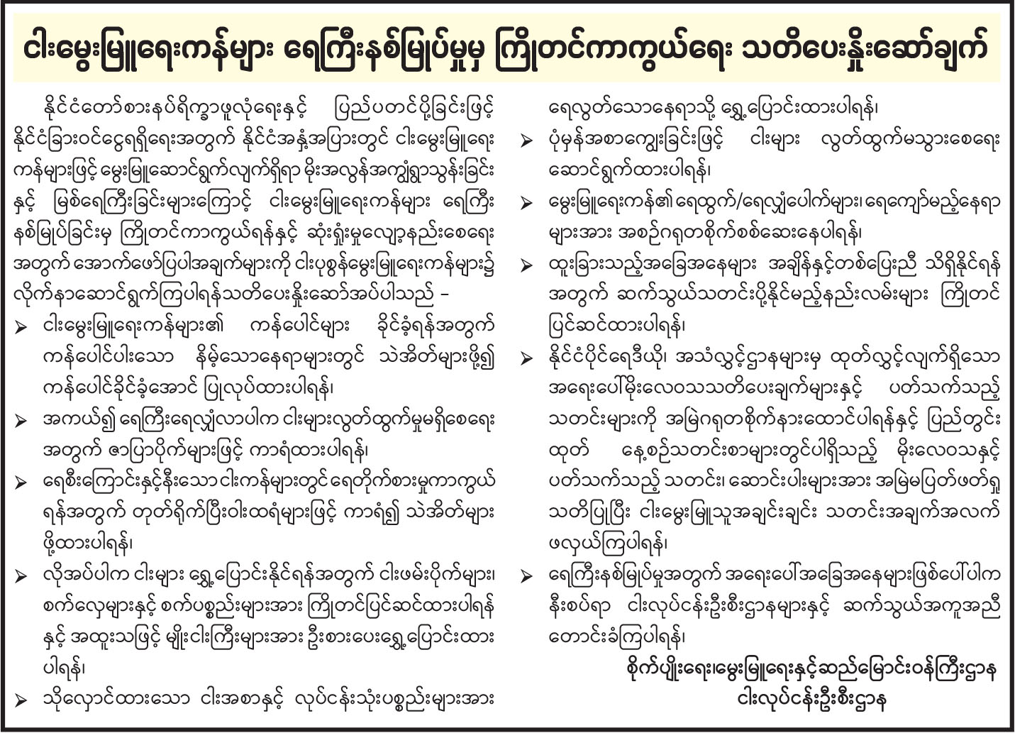 ငါးမွေးမြူရေးကန်များ ရေကြီးနစ်မြုပ်မှုမှ ကြိုတင်ကာကွယ်ရေး သတိပေးနှိုးဆော်ချက်
