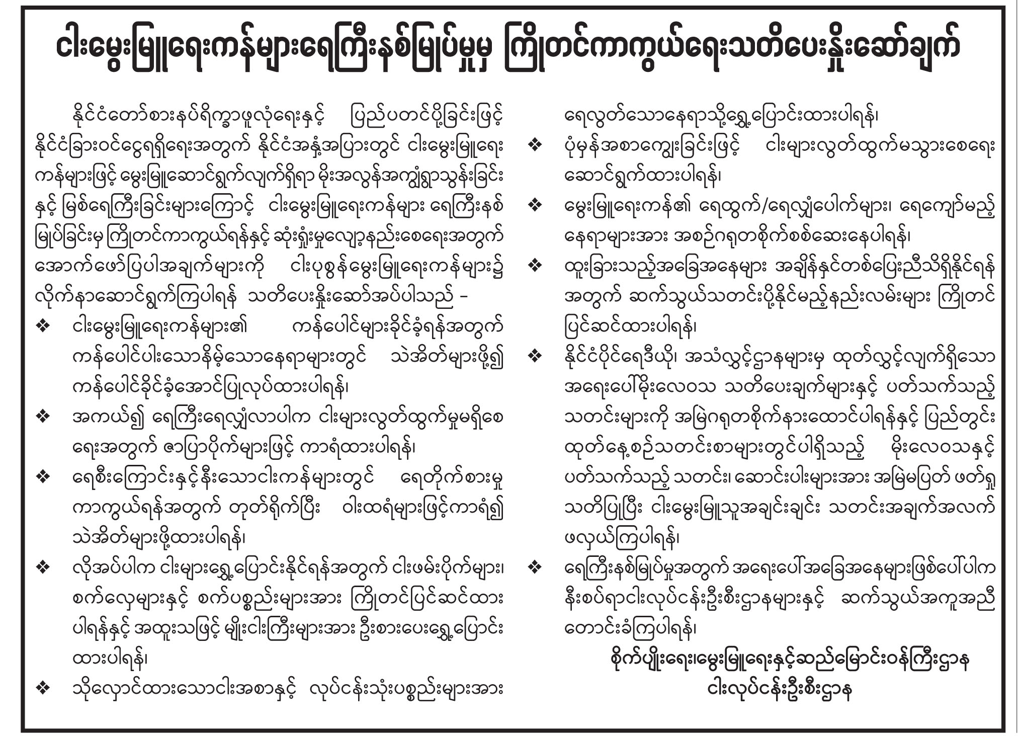 ငါးမွေးမြူရေးကန်များရေကြီးနစ်မြုပ်မှုမှ ကြိုတင်ကာကွယ်ရေးသတိပေးနှိုးဆော်ချက်