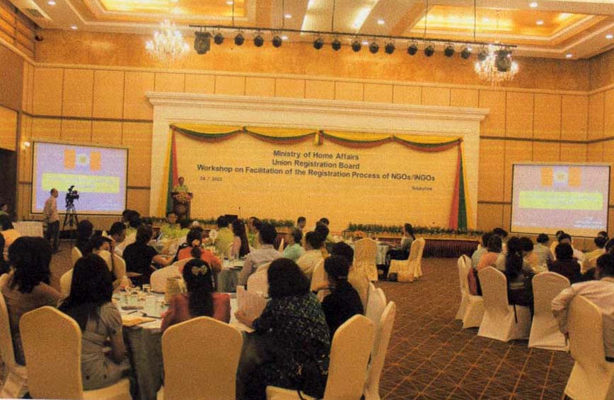 NGO/INGO များ မှတ်ပုံတင်ခြင်းလုပ်ငန်းစဉ် လွယ်ကူချောမွေ့စေရေး အလုပ်ရုံဆွေးနွေးပွဲကို ယနေ့ နံနက် ၈ နာရီ တွင် နေပြည်တော်ရှိ Hotel Max ၌ ကျင်းပသည်။