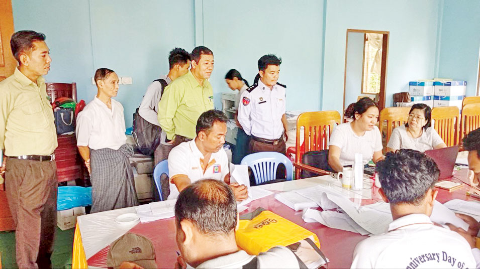 ဧရာဝတီတိုင်းဒေသကြီး ပုသိမ်ခရိုင် ငပုတောမြို့နယ် ရွေးကောက်ပွဲကော်မရှင်အဖွဲ့ခွဲရုံးတွင် မဲစာရင်းများ ဒုတိယအကြိမ် ကြေညာခြင်းမပြုမီ ပြည့်စုံမှန်ကန်စေရေး စိစစ်ဆောင်ရွက်နေမှုကို ယနေ့နံနက်ပိုင်းတွင် မြို့နယ်စီမံခန့်ခွဲရေးနှင့် အုပ်ချုပ်ရေးကော်မတီဥက္ကဋ္ဌ ဦးအောင်ဆန်းဦးနှင့် တာဝန်ရှိသူများက သွားရောက်ကြည့်ရှု စစ်ဆေးသည်။