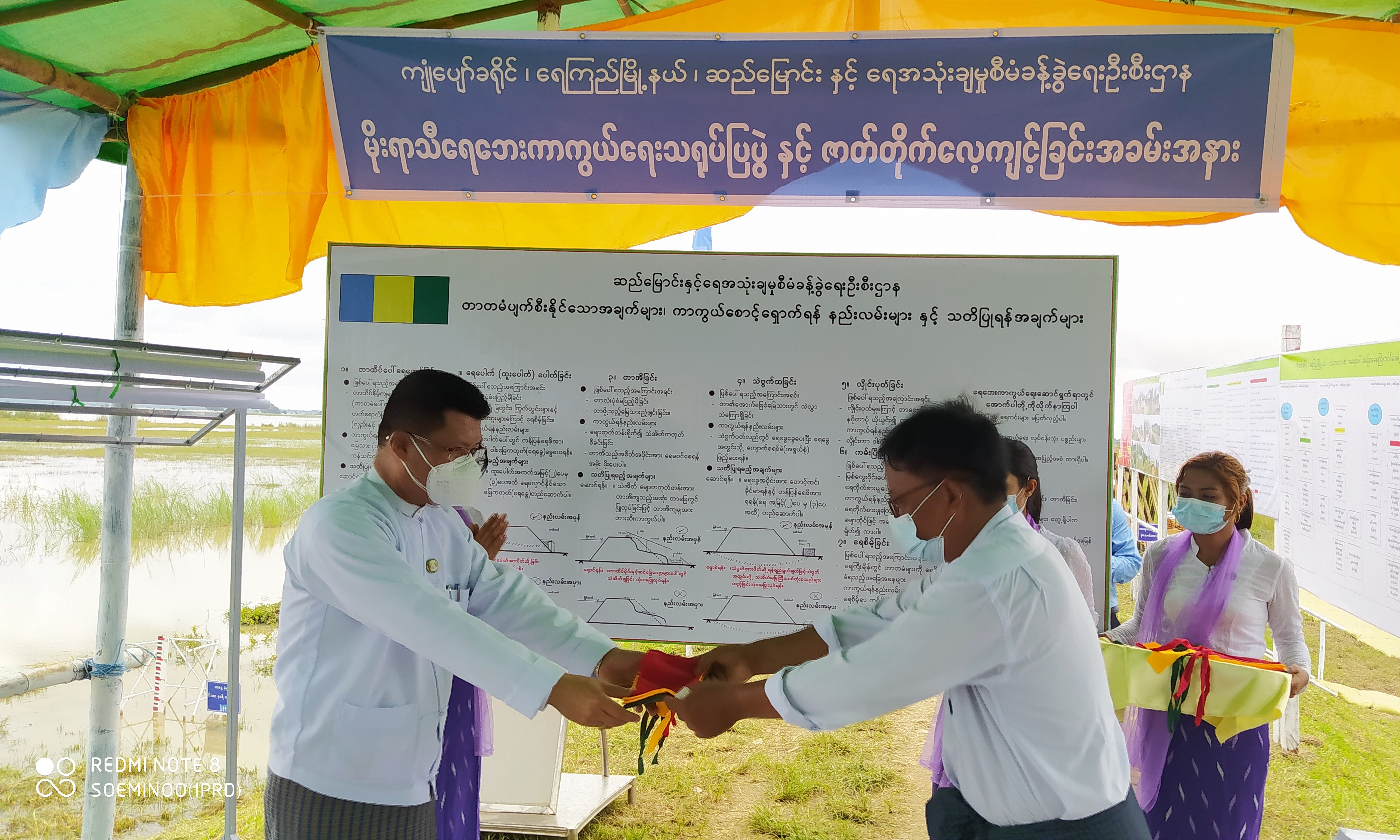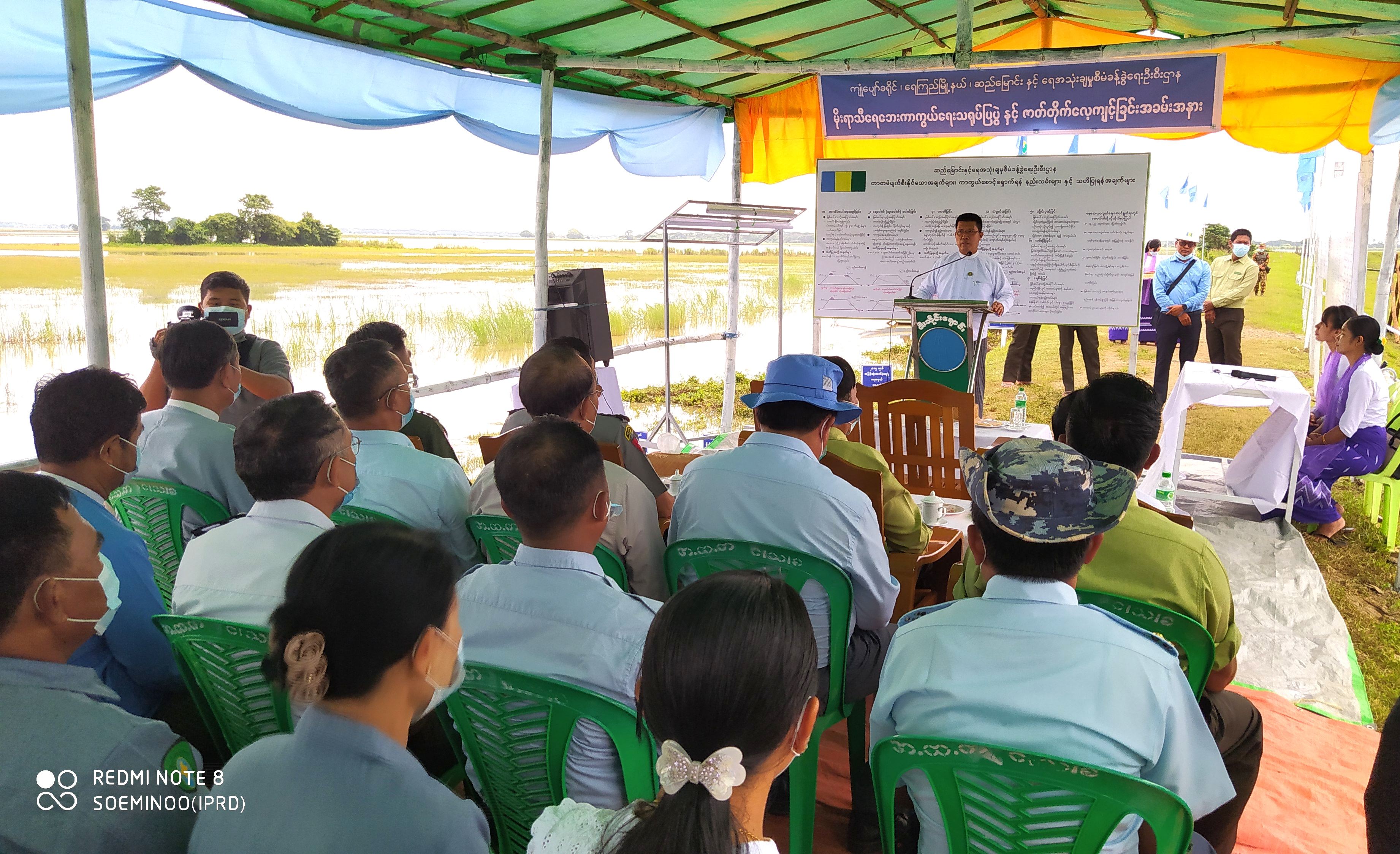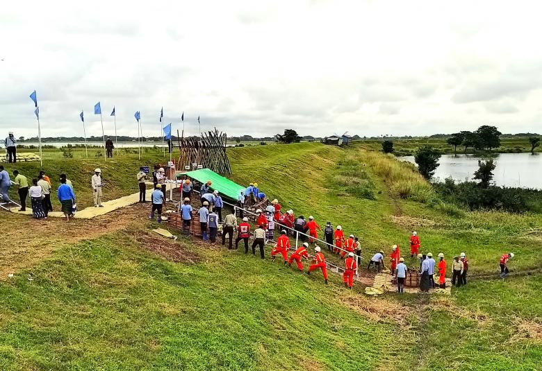 ဧရာဝတီတိုင်းဒေသကြီး၊ ကျုံပျော်ခရိုင်၊ ရေကြည်မြို့နယ်၊ ငါးသိုင်းချောင်းမြို့ရှိ ငဝန်ရေကာတာ၊ တာမိုင် ၄၆ ဗောဓိရေကင်းစခန်းအနီး၌ ဇူလိုင် ၁၅ ရက် နံနက်ပိုင်းက မိုးရာသီရေဘေးကြိုတင်ကာကွယ်ရေး ဇာတ်တိုက်လေ့ကျင့်သရုပ်ပြဆောင်ရွက်မှုများကို ဧရာဝတီတိုင်းဒေသကြီး ဝန်ကြီးချုပ် ဦးတင်မောင်ဝင်းနှင့် အစိုးရအဖွဲ့ဝင်များက ကြည့်ရှုအားပေးခဲ့ကြသည်။