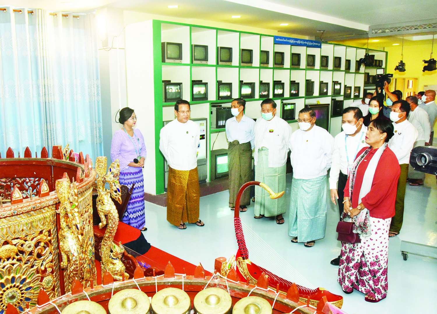 ရှေးဦးစွာ ပြည်ထောင်စုဝန်ကြီးများနှင့်အဖွဲ့သည် မြန်မာ့အသံနှင့် ရုပ်မြင်သံကြား ပင်မအဆောက်အဦအတွင်းရှိ Convergence News Room၊ Presentation Room၊ News Studio တို့၌ သတင်းထုတ်လွှင့်ရေး ပြင်ဆင်ဆောင်ရွက်နေမှုနှင့် ထုတ်လွှင့်နေမှု အခြေအနေများကို ကြည့်ရှုလေ့လာကြသည်။