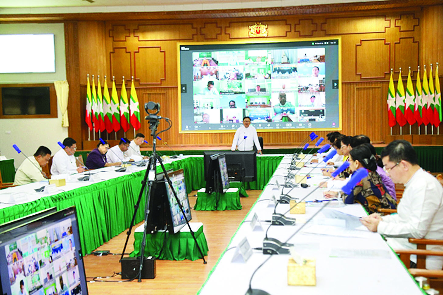 ထို့နောက် ဝန်ကြီးဌာနအသီးသီးမှ ကော်မတီဝင်များ၊ ပုဂ္ဂလိကလုပ်ငန်းရှင်များ၊ အသင်းအဖွဲ့၊ ကုမ္ပဏီများ၊ Zoom Application ဖြင့် တက်ရောက်ကြသူများက သက်ဆိုင်ရာကဏ္ဍများအလိုက် တင်ပြဆွေးနွေးကြရာ ကော်မတီဥက္ကဋ္ဌက လိုအပ်သည်များ ညှိနှိုင်းပေါင်းစပ်ဆွေးနွေးသည်။