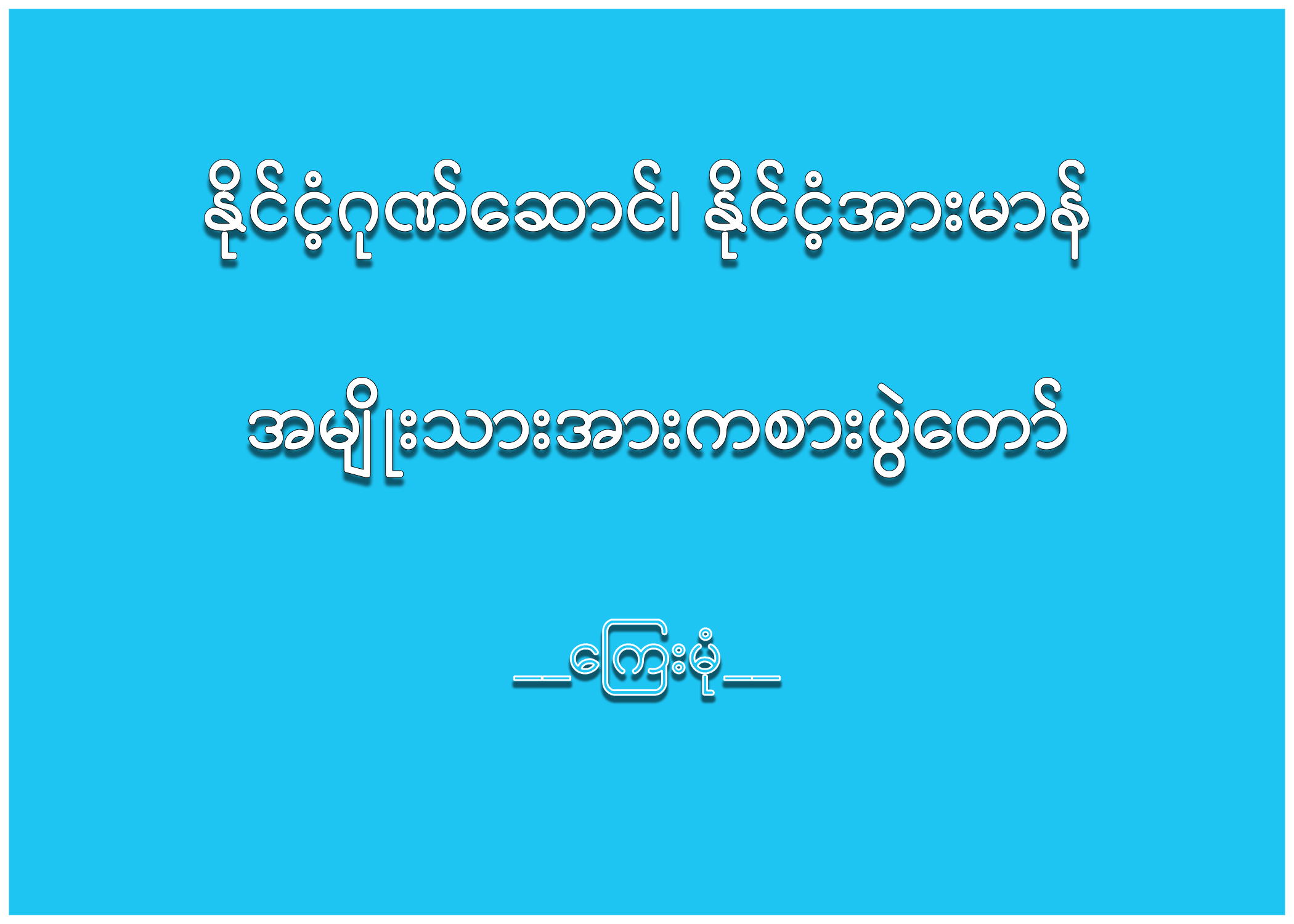 အားကစားနှင့်ပတ်သက်သည့် ခံယူချက်များတွင် “အားကစားမြှင့်တင် တည်ဆောက်ခြင်းသည် နိုင်ငံတော်ကိုကာကွယ်စောင့်ရှောက်နေခြင်းဖြစ်သည်” ဟူသည့် ခံယူချက်သည် အမြင့်မားဆုံးဖြစ်၍ အားကစား ပြိုင်ပွဲများမှ ရရှိလာသော စိတ်ဓာတ်ခွန်အားများဖြင့် နိုင်ငံတော်ကိုကာကွယ်စောင့်ရှောက် ကြရမည်ဖြစ်သည်။ လူတိုင်းလူတိုင်းဘဝတွင် အခက်အခဲများနှင့် ရင်ဆိုင်ကြုံတွေ့ကြသည့်အခါတွင် အနိုင်မခံ အရှုံးမပေးသည့် စိတ်ဓာတ်၊ မိမိကိုယ်မိမိ ယုံကြည်ရဲရင့်သည့်စိတ်ဓာတ်နှင့် ရင်ဆိုင်ကျော်လွှားနိုင်သည့်စိတ်ဓာတ်များအား အားကစားပြိုင်ပွဲမှ ရရှိခဲ့ကြသည်ကို လက်တွေ့ကြုံတွေ့ကြရပြီဖြစ်၍ အဆိုပါစိတ်များဖြင့် မိမိအကျိုး၊ နိုင်ငံတော် အကျိုးအတွက် ရဲဝံ့စွန့်စားစွာ ဆက်လက်မွေးမြူ ဆောင်ရွက်ကြရမည်ဖြစ်သည်။ နိုင်ငံတော်အစိုးရအနေဖြင့် ထူးချွန်အားကစားသမားများ ပေါ်ထွက်လာရေးအတွက် လူထုအားကစားအဆင့်မှ အမျိုးသားအားကစားအဆင့် အထိ အဆင့်ဆင့်အကောင်အထည်ဖော်လျက်ရှိသောကြောင့် ကျောင်းသားလူငယ်များ၊ မသန်စွမ်းသူများ အပါအဝင် ပြည်သူလူထုတစ်ရပ်လုံး ပါဝင်ဆောင်ရွက်ကြရန် လိုအပ်သည်။ ယနေ့အချိန်တွင် အားကစားကဏ္ဍကို စဉ်ဆက်မပြတ် မြှင့်တင်အားပေးဆောင်ရွက်နေသောကြောင့် နိုင်ငံတော်၏ အားကစားအဆင့်အတန်းသည် ပြန်လည်ဦးမော့ လာပြီဖြစ်သကဲ့သို့ အောင်မြင်တိုးတက်မှုများလည်း အထိုက်အလျောက်ရရှိနေပြီ ဖြစ်သည်။ ထိုအောင်မြင်မှုများကို ကျေနပ်နေ၍မရဘဲ ယခုထက်ပိုမိုတိုးတက် အောင်မြင်အောင်၊ အတိတ်က အားကစားကဏ္ဍတွင် ရွှေရောင်လွှမ်းခဲ့သလို အောင်မြင်မှုများရရှိအောင်၊ နိုင်ငံတကာအလယ်တွင် မြင့်မြင့်မားမားရပ်တည်နိုင်အောင် “မြန်မာ့အားကစား ကမ္ဘာကို လွှမ်းရမည်”ဆိုသည့် ရည်မှန်းချက်ကို ဆက်လက်ဖော်ဆောင်ကြရမည်ဖြစ်သည်။ အားကစားဆောင်ရွက်ခြင်းသည် မျိုးချစ်စိတ်ဓာတ်၊ တိုင်းပြည်ချစ်စိတ်ဓာတ်များနှင့် အမျိုးသားရေးစရိုက်လက္ခဏာများကို ရှင်သန်ထက်မြက်စေပြီး တစ်မျိုးသားလုံးနိုးကြားရှင်သန်မှုကို အထောက်အကူပြုလျက်ရှိသည်။ အားကစားမောင်မယ်များသည် အားကစားစိတ်ဓာတ်အပြည့်ဖြင့် အနိုင်ရရှိရေး ရေကုန်ရေခန်း ကြိုးပမ်းယှဉ်ပြိုင်ခဲ့ကြသဖြင့် အမျိုးသား အားကစားပွဲတော်ကြီးမှတစ်ဆင့် နိုင်ငံ့လက်ရွေးစင်အားကစားသမားများ ပေါ်ထွက်လာပြီး နိုင်ငံတကာ အလယ်တွင် နိုင်ငံ့ဂုဏ်ကို မြင့်မားတိုးတက်လာအောင် ဖော်ဆောင်နိုင်လိမ့်မည်ဟု ယုံကြည်သည်။ သို့ဖြစ်ရာ အမျိုးသားအားကစားပွဲတော်ကြီးကို ဂုဏ်ယူဝင့်ကြွား မြင့်မားထည်ဝါစွာ အောင်အောင်မြင်မြင် ကျင်းပနိုင်ခဲ့ခြင်းသည် အားကစားကဏ္ဍကို မြင့်မားတိုးတက် စေသည်သာမက အားကစားမှပေါ်ထွက်လာသည့် စည်းလုံးညီညွတ်မှု၊ ချစ်ကြည်ရ