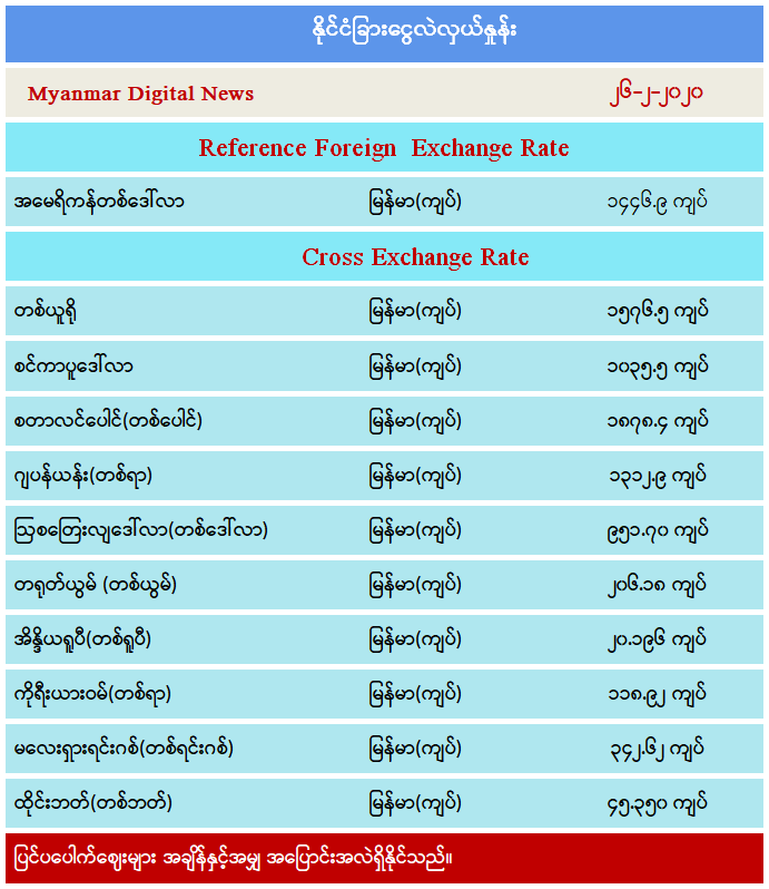 နိုင်ငံခြားငွေလဲလှယ်နှုန်း