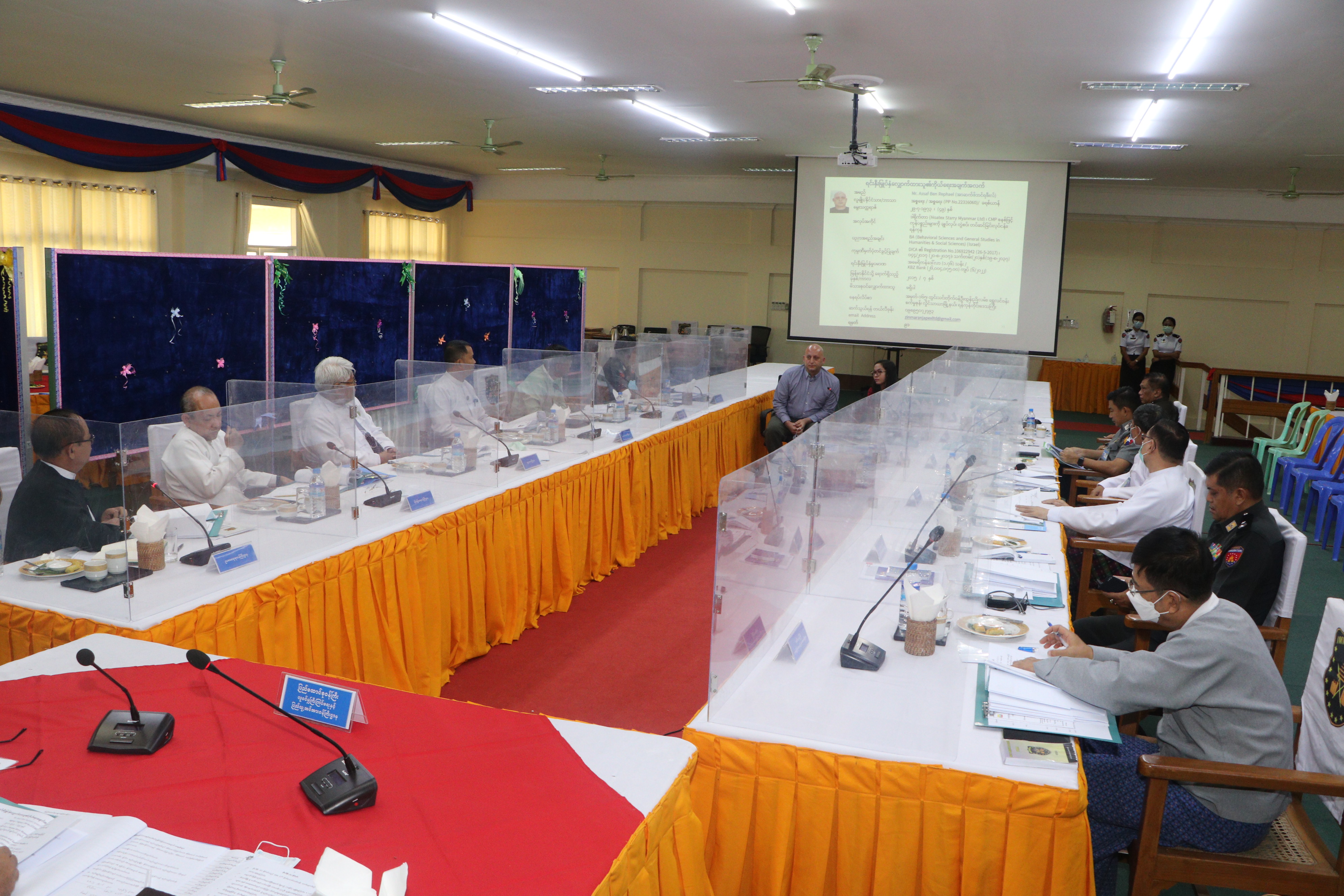 ထို့နောက် ဗဟိုကော်မတီအတွင်းရေးမှူး အမြဲတမ်းအတွင်းဝန် ဦးအောင်ကျော်စိုးက နိုင်ငံခြားသား အမြဲနေထိုင်ခွင့်ပြုခြင်းနှင့်ပတ်သက်၍ လုပ်ငန်းဆောင်ရွက်မှုအခြေအနေများ၊ အမြဲနေထိုင်ခွင့်စနစ်ဖြင့် ခွင့်ပြုဆောင်ရွက်ပေးမှုနှင့် ဆောင်ရွက်ရသည့် လုပ်ငန်းအစီအစဉ်များကို လည်းကောင်း၊ တာဝန်ခံအရာရှိက လက်ရှိလူတွေ့စစ်ဆေး အကဲဖြတ်မည့် PR လျှောက်ထားသူ ၁၂ ဦး၊ မိသားစုဝင် ကိုးဦးတို့၏ ကိုယ်ရေးအချက်အလက်များ၊ လုပ်ငန်းကော်မတီနှင့် ဗဟိုကော်မတီ တို့မှ စိစစ်ဆောင်ရွက်ခဲ့မှုနှင့် လူတွေ့အကဲဖြတ် စိစစ်မည့် အစီအစဉ်များကို လည်းကောင်း အသီးသီး ရှင်းလင်းတင်ပြရာ ဗဟိုကော်မတီဝင်များက သိရှိလိုသည်များကို မေးမြန်းဆွေးနွေးကြသည်။