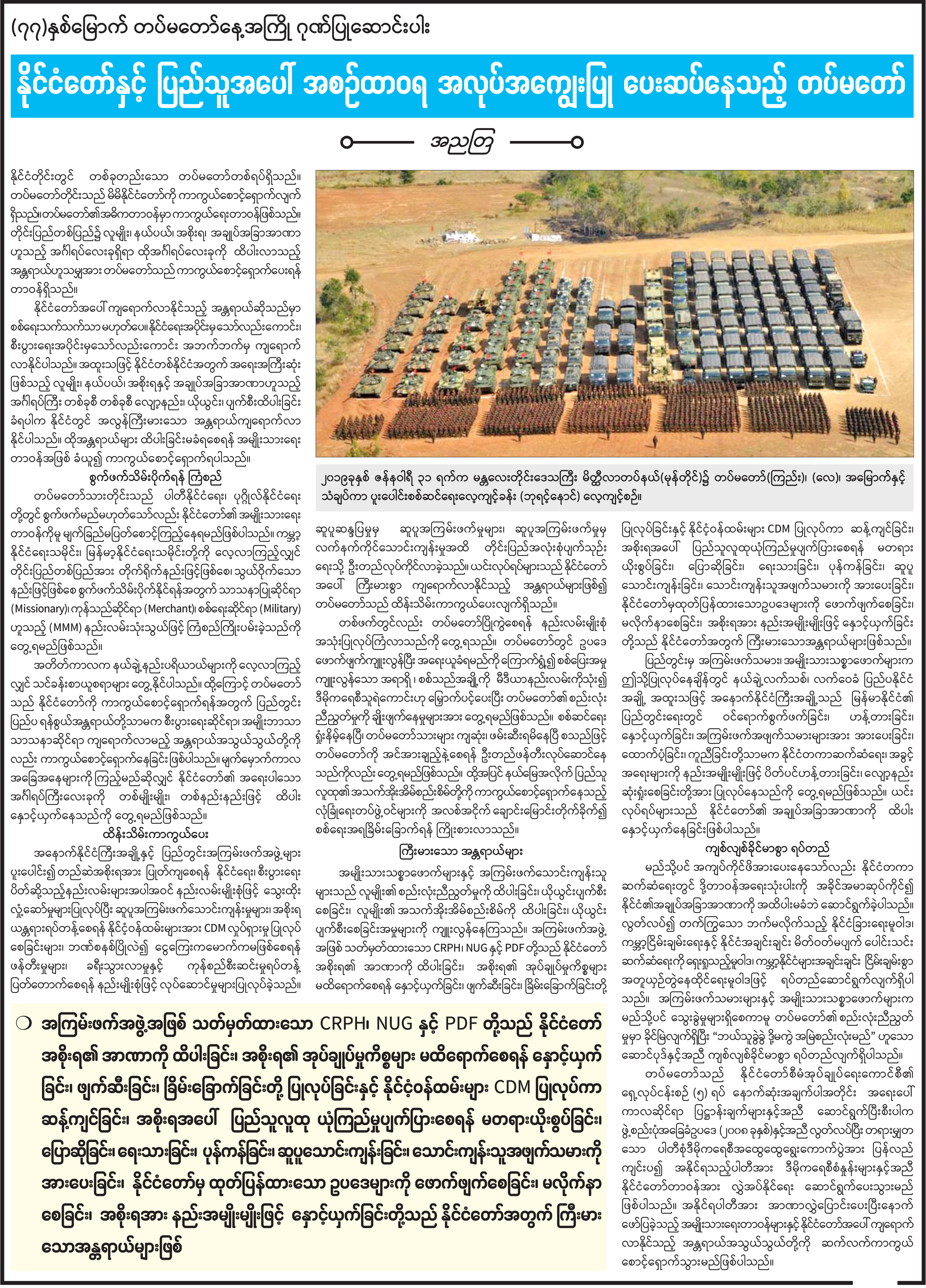 နိုင်ငံနှင့်ပြည်သူအပေါ် အစဉ်ထာဝရ အလုပ်အကျွေးပြု ပေးဆပ်နေသည့် တပ်မတော်