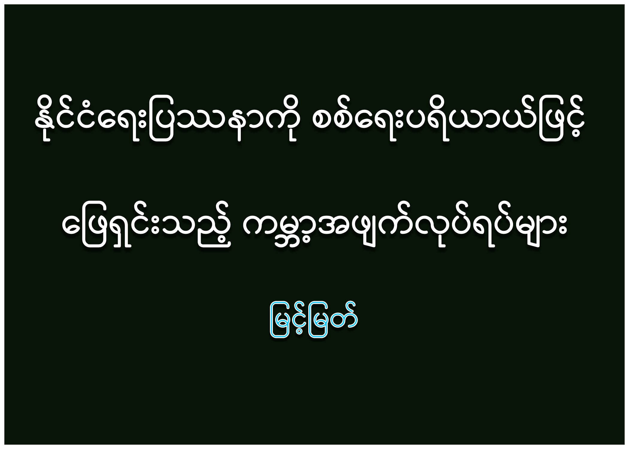 ယနေ့ကမ္ဘာကြီးတွင် စစ်ရေးတင်းမာမှုများ မြင့်တက်လာနေပြီး WW - III (တတိယကမ္ဘာစစ်) ဟူသော စကားလုံးမှာ ထမင်းစားရေသောက်ဖြစ်လာသည်။ အစ္စရေး-ဂါဇာစစ်ပွဲက ဂါဇာနယ်မြေမှတစ်ဆင့် လက်ဘနွန် နိုင်ငံထဲအထိ စစ်မျက်နှာကျယ်ပြန့်သွားချိန်မှာ၂၀၂၂ ခုနှစ် ဖေဖော်ဝါရီလကတည်းက ဖြစ်နေသော ရုရှား - ယူကရိန်း ပဋိပက္ခကလည်း ယခုအချိန်အထိ ပြီးဆုံးဖွယ်လမ်းစမမြင်။ ကမ္ဘာကြီးမှာ အရာရာသည် အပျက်ဘက်ကို ဦးတည်လာနေသလား မြင်နေရသည်။ အရှုံးအနိုင်မပေါ်နိုင်သော ကမ္ဘာ့နေရာအချို့မှ စစ်ပွဲများတွင် အခွန်ထမ်းပြည်သူများ၏ ငွေကြေးဓနများကို ဘာကြောင့်သုံးစွဲနေကြပါသလဲ.. နိုင်ငံရေးပြဿနာ အပါအဝင် အကျပ်အတည်းပေါင်းစုံကို စစ်ရေးနည်းလမ်းထက် နိုင်ငံရေးနည်းလမ်း၊ သံတမန်နည်းလမ်းများဖြင့် အပြုသဘောဆန်ဆန် ညှိနှိုင်းမဖြေရှင်းသင့်ဘူးလား.. စသည်ဖြင့် စဉ်းစားမိသည်။
