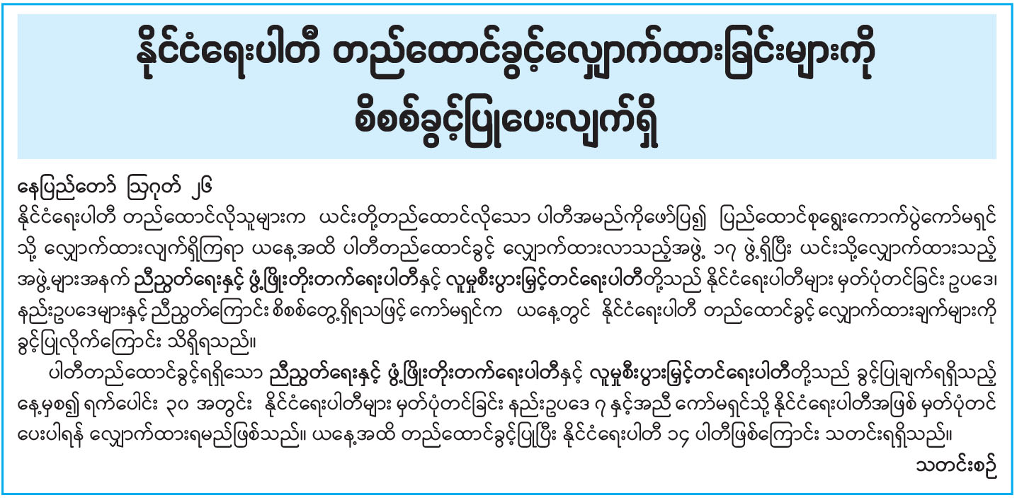 နိုင်ငံရေးပါတီ တည်ထောင်ခွင့်လျှောက်ထားခြင်းများကို စိစစ်ခွင့်ပြုပေးလျက်ရှိ