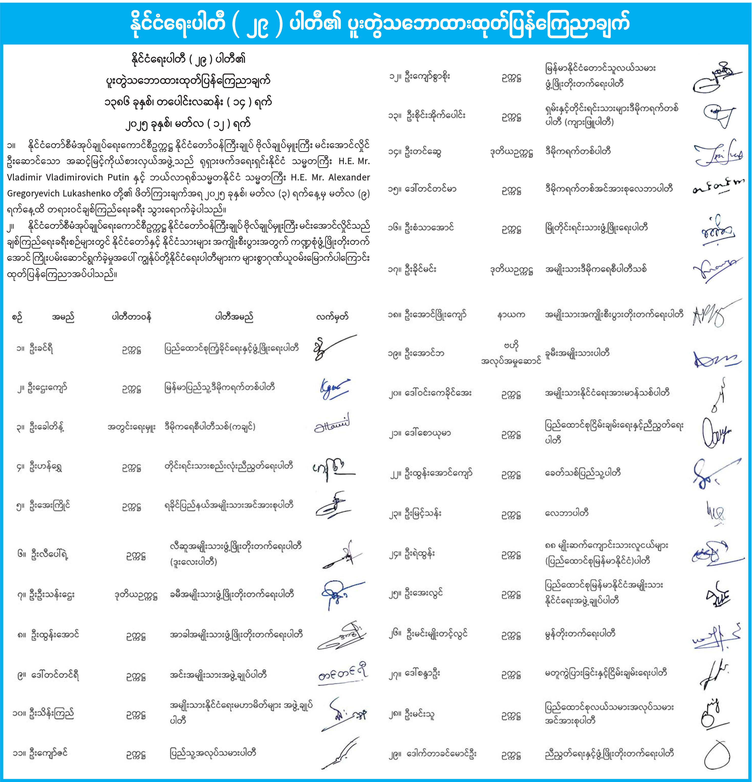 နိုင်ငံရေးပါတီ(၂၉) ပါတီ၏ ပူးတွဲသဘောထားထုတ်ပြန်ကြေညာချက်