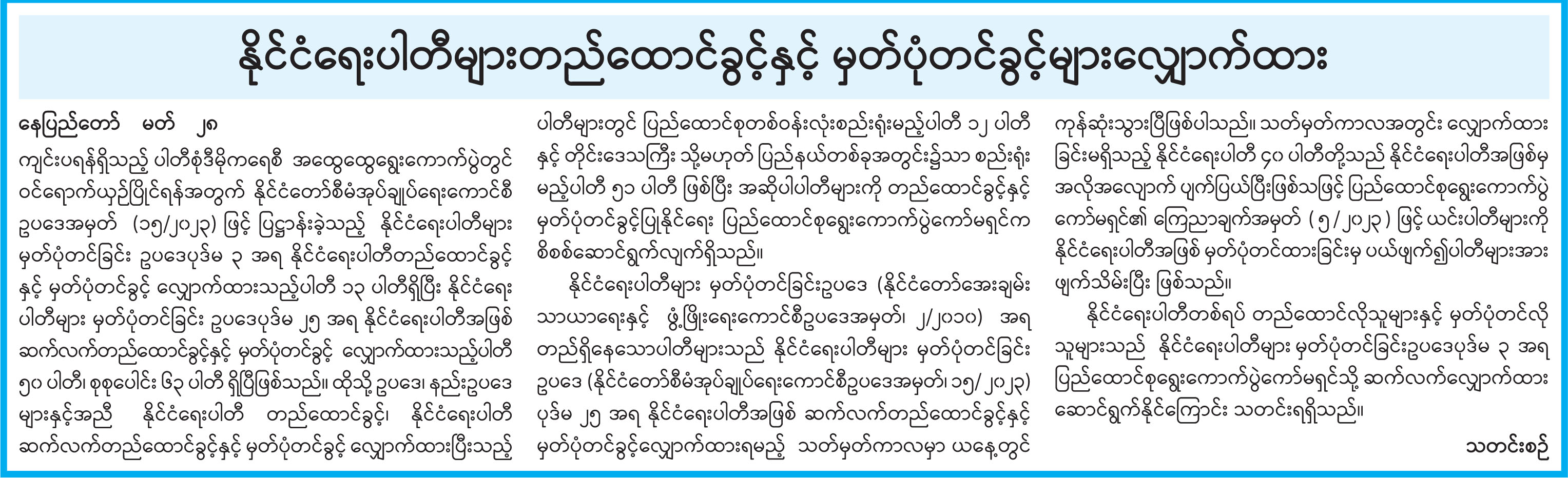 နိုင်ငံရေးပါတီများတည်ထောင်ခွင့်နှင့် မှတ်ပုံတင်ခွင့်များလျှောက်ထား