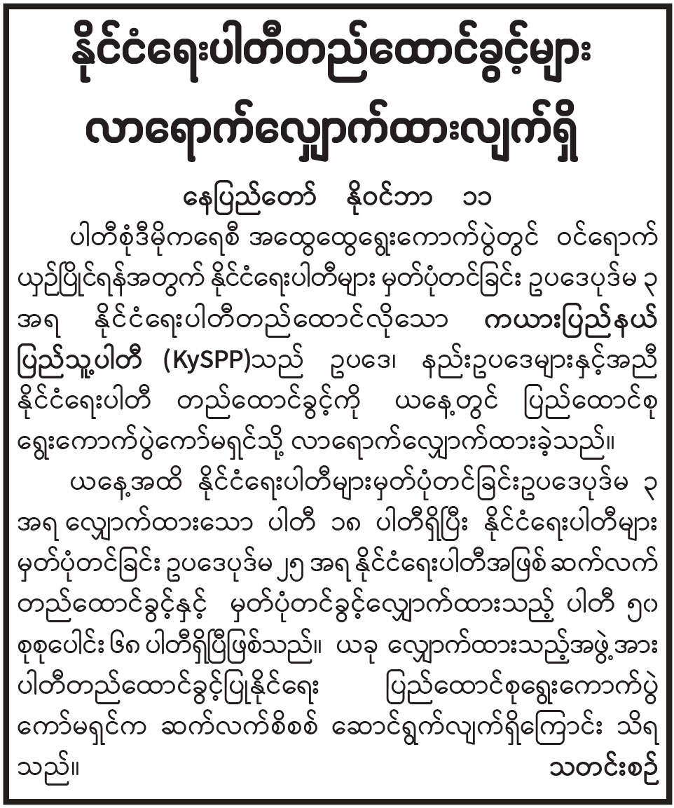နိုင်ငံရေးပါတီတည်ထောင်ခွင့်များ လာရောက်လျှောက်ထားလျက်ရှိ