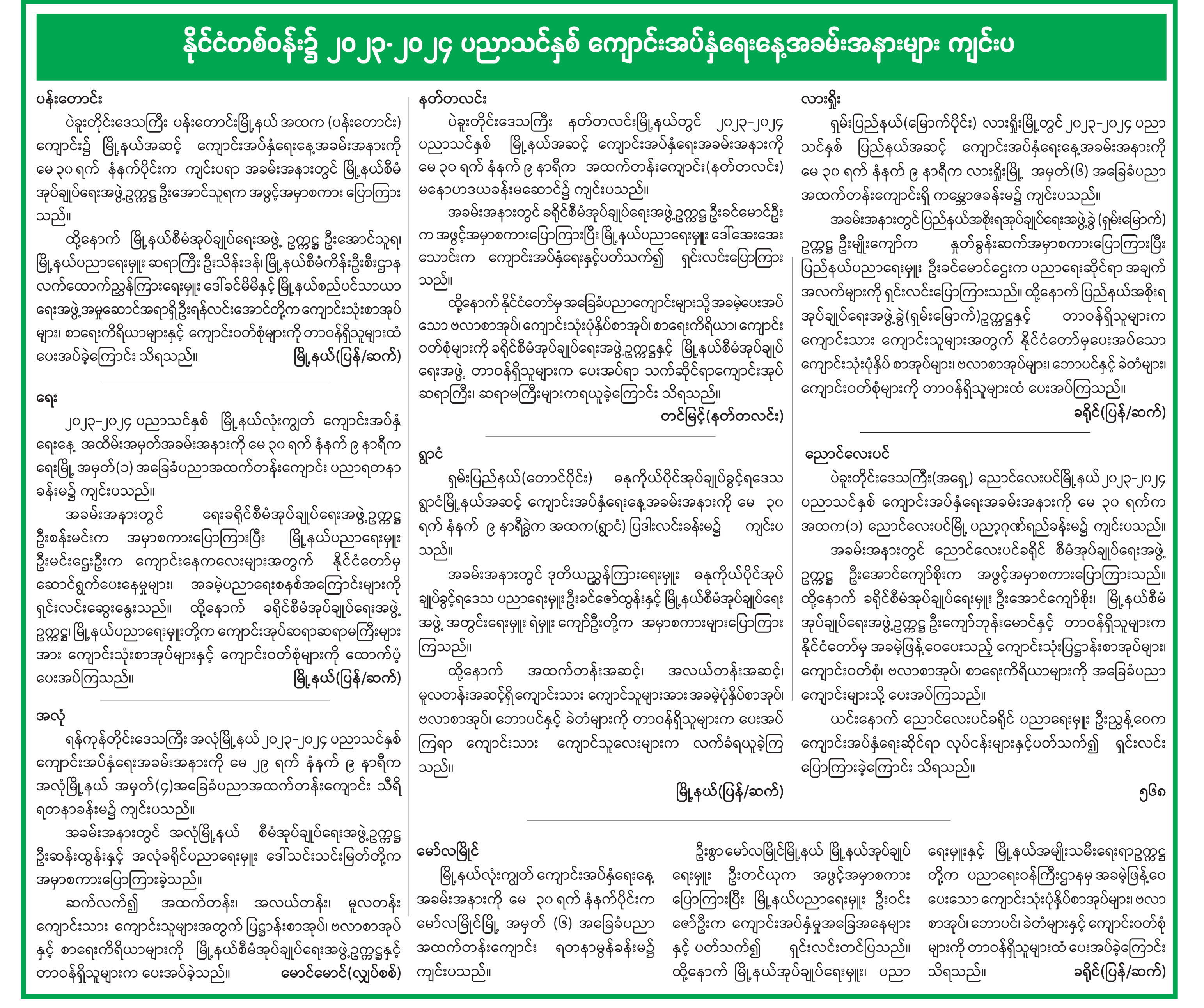 ပညာရေးကဏ္ဍနှင့် ကျန်းမာရေးကဏ္ဍမြှင့်တင်နိုင်ရေး ညှိနှိုင်းအစည်းအဝေးကျင်းပ