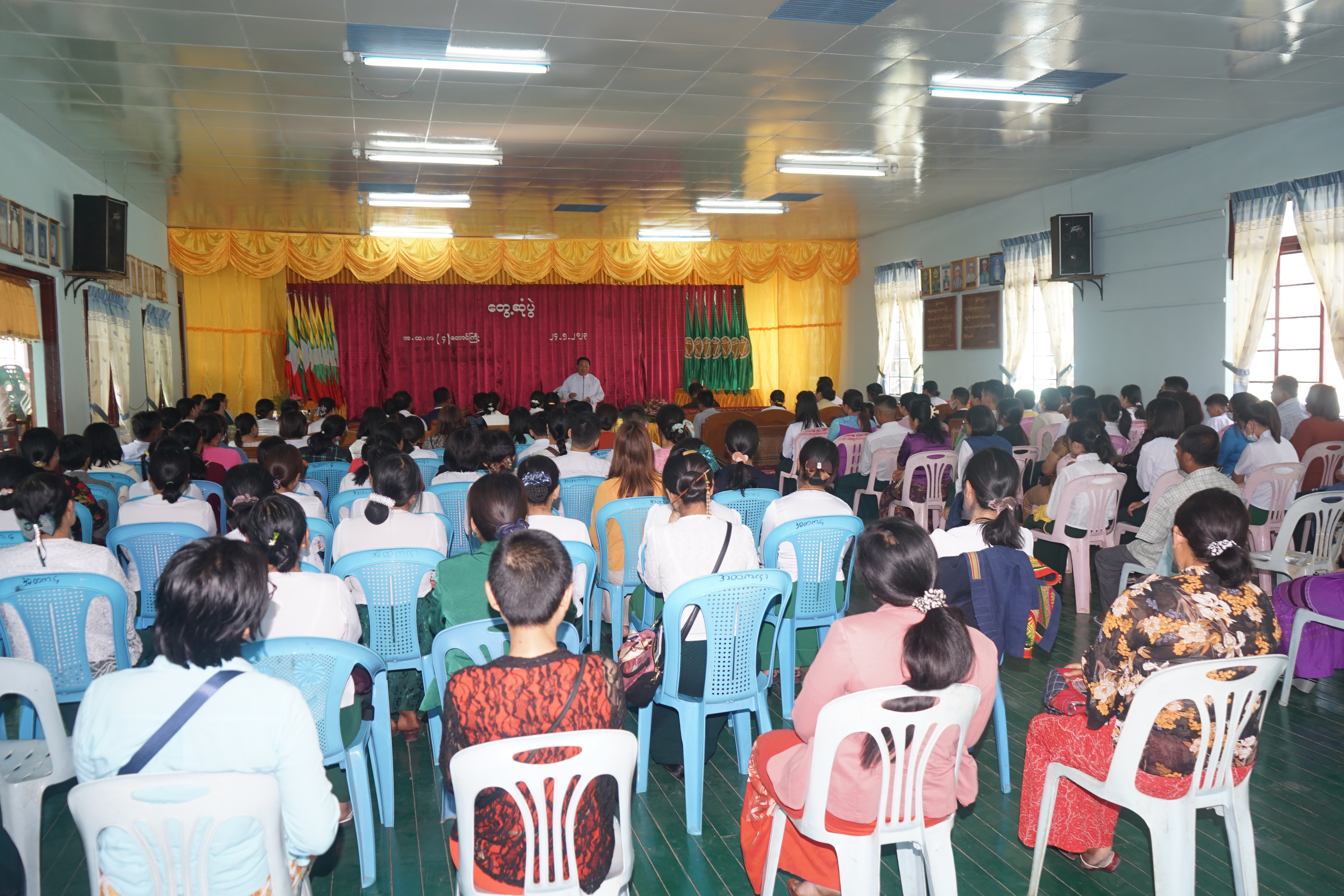 ယင်းနောက် နိုင်ငံတော်စီမံအုပ်ချုပ်ရေးကောင်စီအဖွဲ့ဝင် ဒေါက်တာကျော်ထွန်းက နိုင်ငံသားတိုင်း အခြေခံပညာ အဆင့်အလိုက် သတ်မှတ်ကာလအတွင်း သင်ယူပြီးမြောက် စေရေးအတွက် ကျောင်းနေအရွယ် ကလေးများအားလုံး ကျောင်းနေရေးနှင့် ကျောင်းနေသည့် ကလေးတိုင်း ကျောင်းနေမြဲရေးလုပ်ငန်းကို ဒေသအာဏာပိုင်များ၊ ပညာရေးဝန်ထမ်းများ၊ ဌာနဆိုင်ရာအသင်း အဖွဲ့ဝင်များ၊ ပညာရေးစေတနာရှင်များနှင့် မိဘပြည်သူများ ပူးပေါင်း ပါဝင်ပံ့ပိုး ကူညီမှုများဖြင့် နှစ်စဉ်နှစ်တိုင်း မေလနောက်ဆုံးရက်သတ္တပတ်ကို ကျောင်းအပ်နှံရေး သီတင်းပတ်အဖြစ် သတ်မှတ် ပြီး အခြေခံပညာကျောင်းအသီးသီး၌ ကျောင်းအပ်နှံရေး အခမ်းအနား များ ဆောင်ရွက်ကြပါကြောင်း၊ ပညာသင်နှစ်အစပိုင်းတွင် မိဘများအခက်အခဲမ ရှိစေဘဲသားသမီးများကို ကျောင်းအပ်နှံနိုင်ရေးအတွက် ပညာရေး ဝန်ကြီးဌာနက ဗလာစာအုပ်၊ ဘောပင်၊ခဲတံ၊ ကျောင်းဝတ်စုံနှင့် ကျောင်းသုံးပုံနှိပ်ပြဌာန်း ဖတ်စာအုပ်များကို အခမဲ့ဖြန့်ဝေပေးလျက်ရှိပြီး အခြေခံပညာမူလတန်းအဆင့်၊ အလယ်တန်းအဆင့်၊ အထက်တန်းအဆင့် ကျောင်းသား၊ ကျောင်းသူများအတွက် အခမဲ့ပညာရေးစနစ်ကို အကောင်အထည်ဖော် ဆောင်ရွက်လျက်ရှိပါကြောင်း။