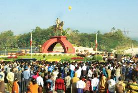 မြန်မာ့နိုင်ငံရေးသမိုင်းမှာ မော်ကွန်းထိုးထားရမယ့် ကြီးကျယ်ခမ်းနားတဲ့ ဗိုလ်ချုပ်အောင်ဆန်းရဲ့ လုပ်ဆောင်ချက် တွေကို စံပြုနိုင်ကြစေဖို့အတွက် နေပြည်တော် သပြေကုန်းအဝိုင်းပေါ်မှာ ဗိုလ်ချုပ်အောင်ဆန်းကြေးရုပ်တုကို ၂၀၁၉ ခုနှစ် အောက်တိုဘာလမှာ စတင်တည်ဆောက်ခဲ့ပြီး ဗိုလ်ချုပ်အောင်ဆန်း မွေးနေ့ဖြစ်တဲ့ ၂၀၂၀ ပြည့်နှစ် ဖေဖော်ဝါရီလ ၁၃ ရက်မှာ ဖွင့်လှစ်နိုင်ခဲ့ပါတယ်။