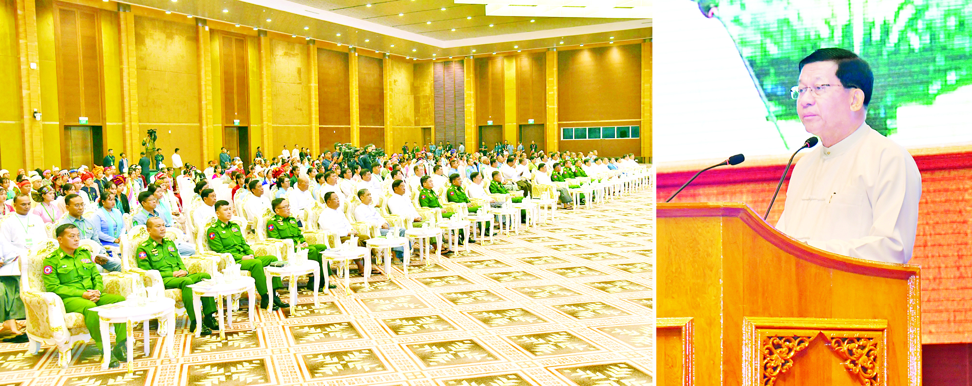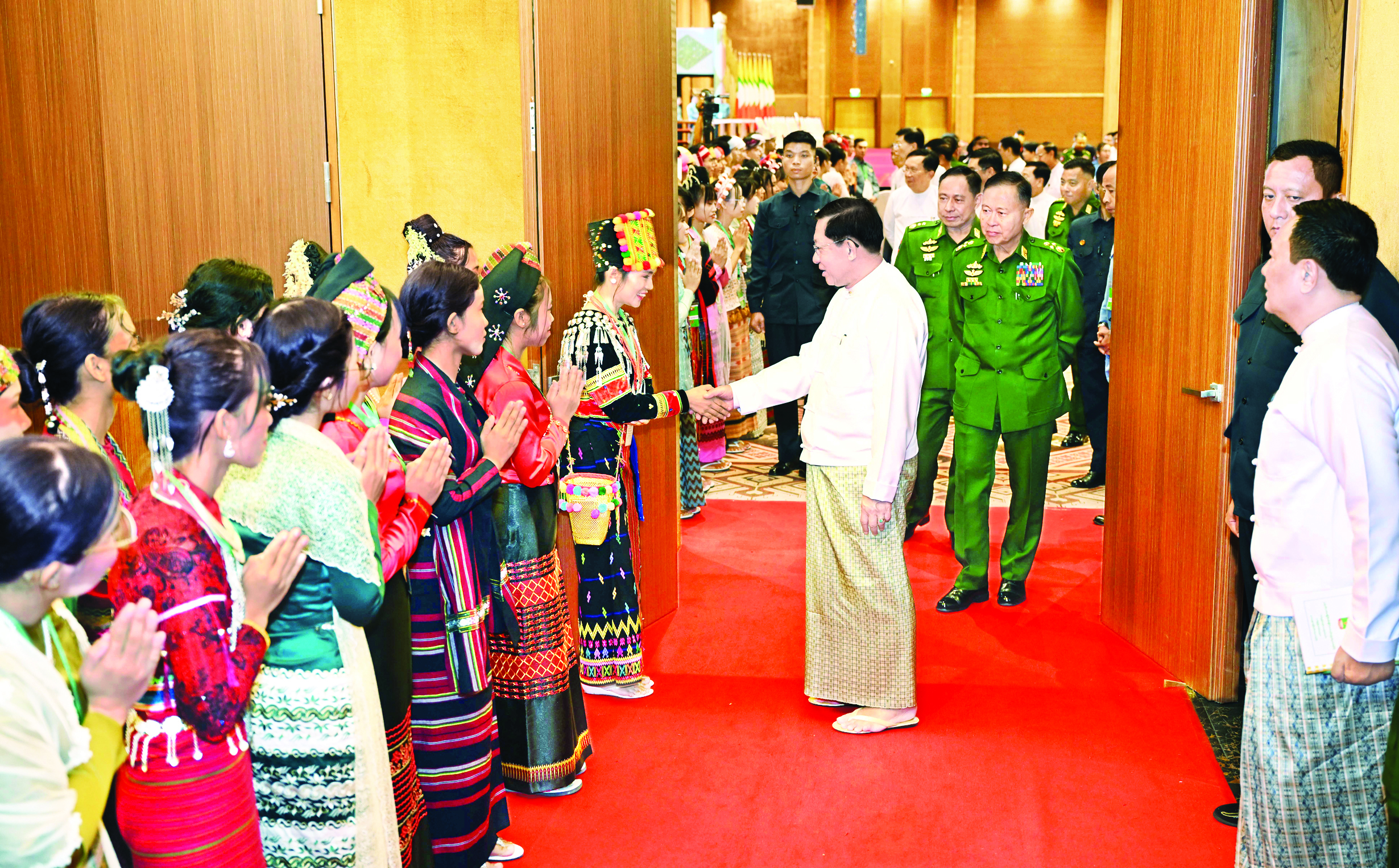 ပြည်ထောင်စုသမ္မတမြန်မာနိုင်ငံတော် ယာယီသမ္မတ နိုင်ငံတော်လုံခြုံရေးနှင့် အေးချမ်းသာယာရေးကော်မရှင် ဥက္ကဋ္ဌ ဗိုလ်ချုပ်မှူးကြီး မင်းအောင်လှိုင်သည် ပြည်ထောင်စုတိုင်းရင်းသားလူမျိုးများဖွံ့ဖြိုးရေး တက္ကသိုလ်ပညာရေးဘွဲ့ ၅ နှစ်သင်တန်း အမှတ်စဉ် (၇) မှ ကျောင်းသား ကျောင်းသူများကို ယနေ့ နံနက်ပိုင်းတွင် နေပြည်တော်ရှိ မြန်မာအပြည်ပြည်ဆိုင်ရာကွန်ဗင်းရှင်း ဗဟိုဌာန (၁) (MICC-1) ၌ တွေ့ဆုံ အမှာစကားပြောကြားသည်။