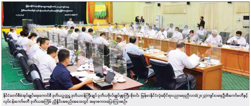 ထို့နောက် နိုင်ငံတော်စီမံအုပ်ချုပ်ရေးကောင်စီ ဒုတိယဥက္ကဋ္ဌ ဒုတိယဝန်ကြီးချုပ်က ရှင်းလင်းဆွေးနွေး တင်ပြချက်များအပေါ် လိုအပ်သည်များပေါင်းစပ်ညှိနှိုင်းပေးပြီး နိဂုံးချုပ်အမှာစကား ပြောကြားကာ အစည်းအဝေးကို ရုပ်သိမ်းခဲ့ကြောင်း သိရသည်။