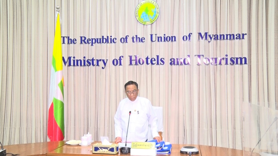 နိုင်ငံတော်စီမံအုပ်ချုပ်ရေးကောင်စီဥက္ကဌ နိုင်ငံတော်ဝန်ကြီးချုပ်၏ လမ်းညွှန်ချက်များ ထပ်ဆင့်ရှင်းလင်းခြင်းကို ယမန်နေ့ညနေပိုင်းတွင် နေပြည်တော် ဟိုတယ်နှင့် ခရီးသွားလာရေး ဝန်ကြီးဌာန နီလာခန်းမ၌ Hybrid စနစ်ဖြင့် ကျင်းပသည်။