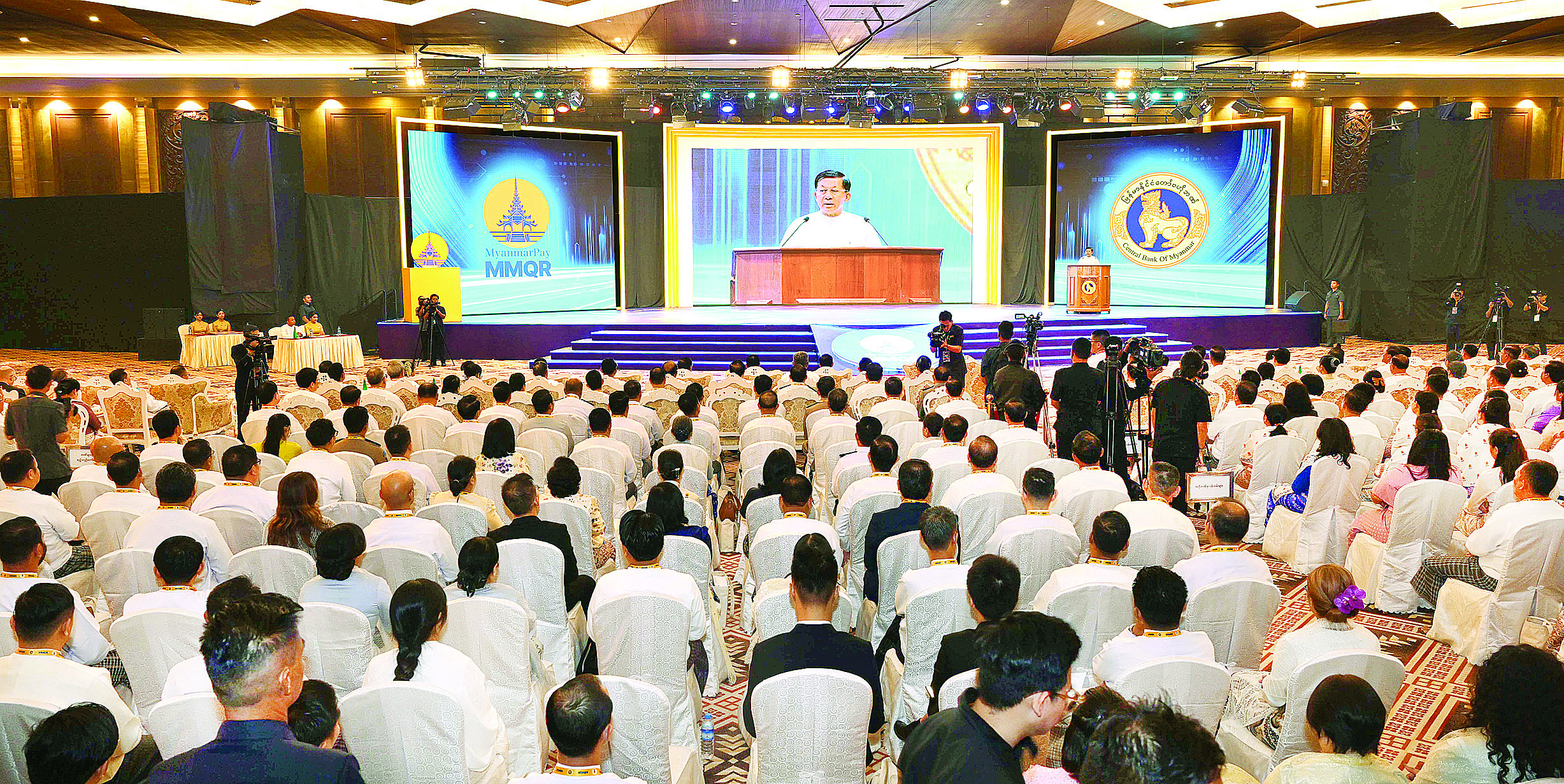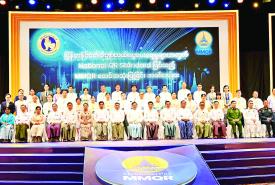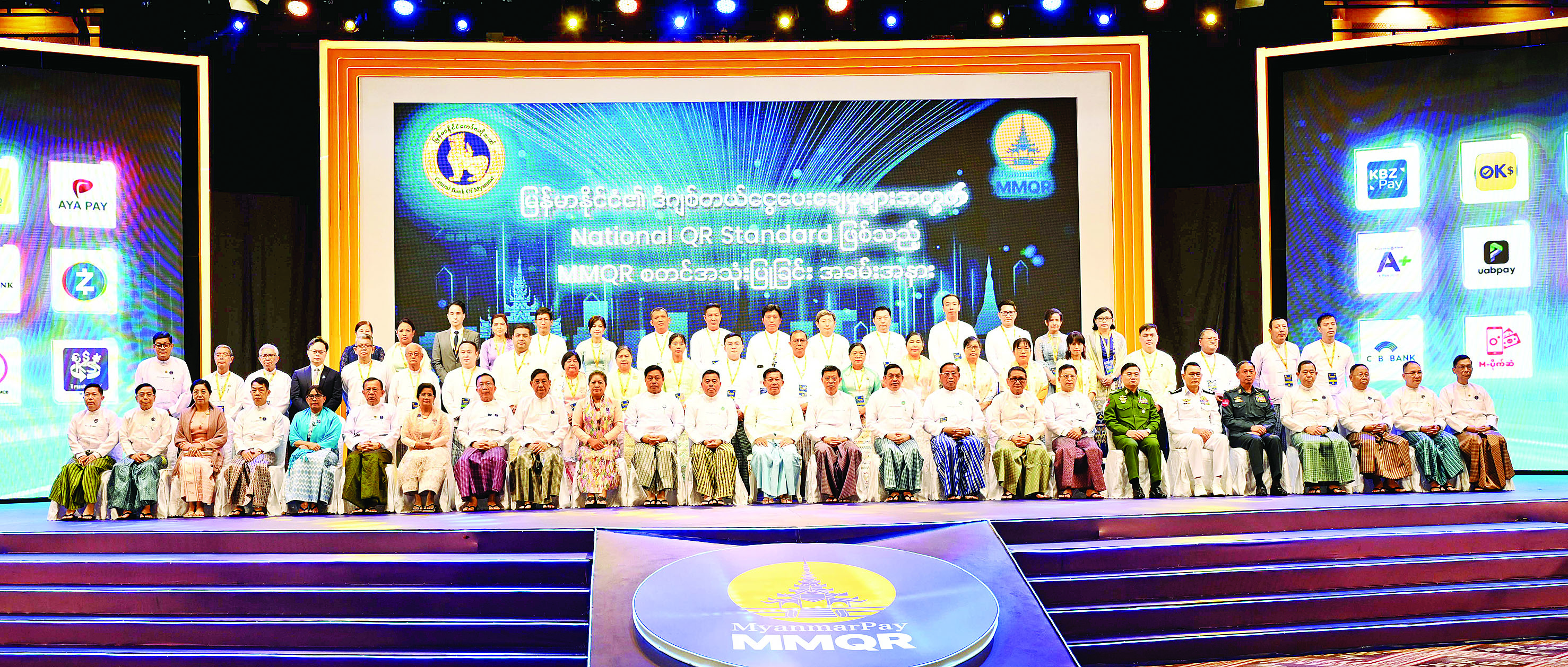 ဦးစွာ နိုင်ငံတော်စီမံအုပ်ချုပ်ရေးကောင်စီ ဥက္ကဋ္ဌ နိုင်ငံတော်ဝန်ကြီးချုပ်က မြန်မာနိုင်ငံ၏ ဒစ်ဂျစ်တယ်ငွေပေးချေမှုအတွက် National QR Standard ဖြစ်သည့် MMQR စတင်အသုံးပြုခြင်း အခမ်းအနားကို စက်ခလုတ်နှိပ်၍ ဖွင့်လှစ်ပေးသည်။