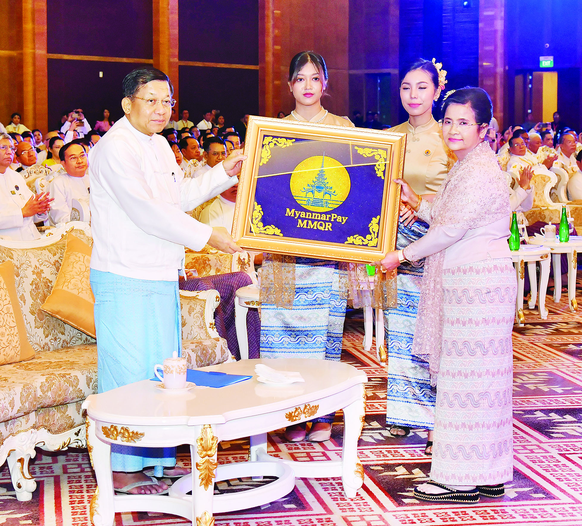 ထို့နောက် နိုင်ငံတော်စီမံအုပ်ချုပ်ရေးကောင်စီ ဥက္ကဋ္ဌ နိုင်ငံတော်ဝန်ကြီးချုပ်ထံ မြန်မာနိုင်ငံတော်ဗဟိုဘဏ် ဥက္ကဋ္ဌက မြန်မာနိုင်ငံ၏ ဒစ်ဂျစ်တယ်ငွေပေးချေမှုအတွက် National QR Standard ဖြစ်သည့် MMQR စတင်အသုံးပြုခြင်း အထိမ်းအမှတ် လက်ဆောင်ကို ဂါရဝပြုပေးအပ်သည်။