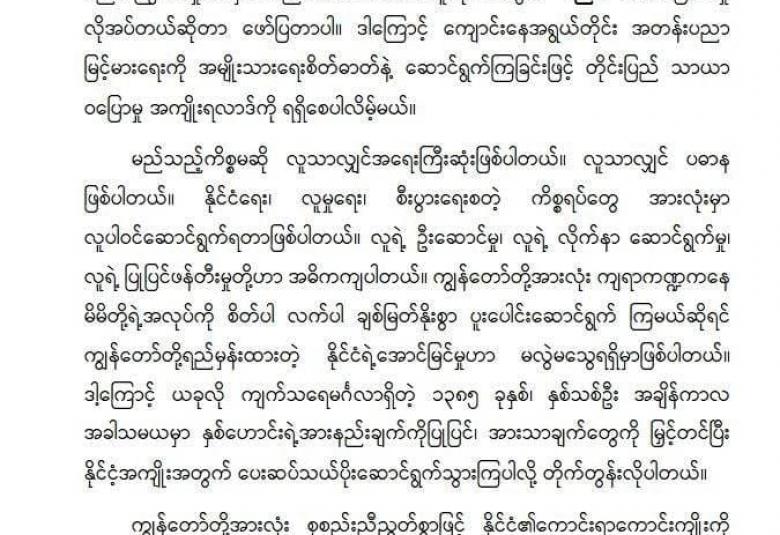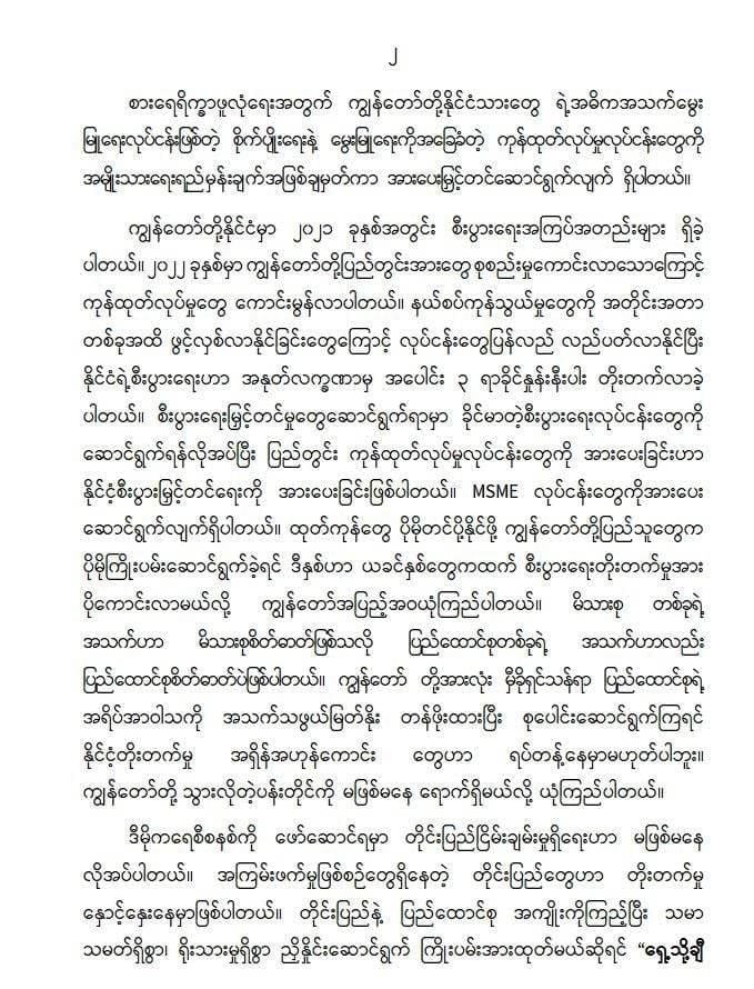 မိမိတို့နိုင်ငံအနေဖြင့် စိုက်ပျိုးမွေးမြူရေးလုပ်ငန်းများ အောင်မြင်ဖြစ်ထွန်းအောင် ဆောင်ရွက်သွားမည်ဆိုပါက နိုင်ငံပိုမိုဖွံ့ဖြိုးတိုးတက်လာမည်