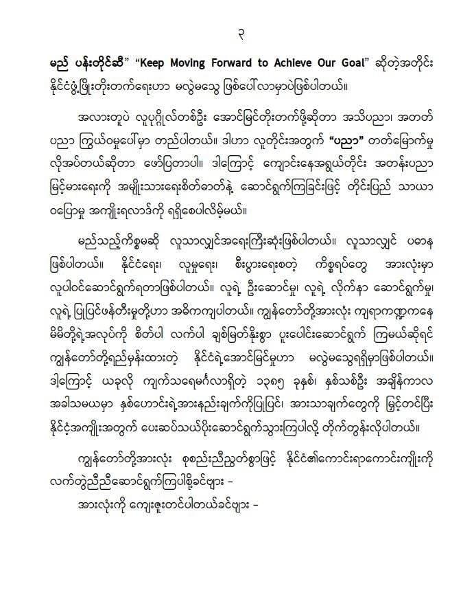 စိုက်ပျိုးရေးနှင့် မွေးမြူရေးလုပ်ငန်းများ ပိုမိုတိုးတက်အောင်ဆောင်ရွက်နိုင်ရန် စိုက်ပျိုးရေးနှင့် မွေးမြူရေး အတတ်ပညာရှင် ပညာတတ်လူသားအရင်းအမြစ်များ လိုအပ်သဖြင့် ကျေးလက်ပညာရည် မြင့်မားစေရေး ဆောင်ရွက်