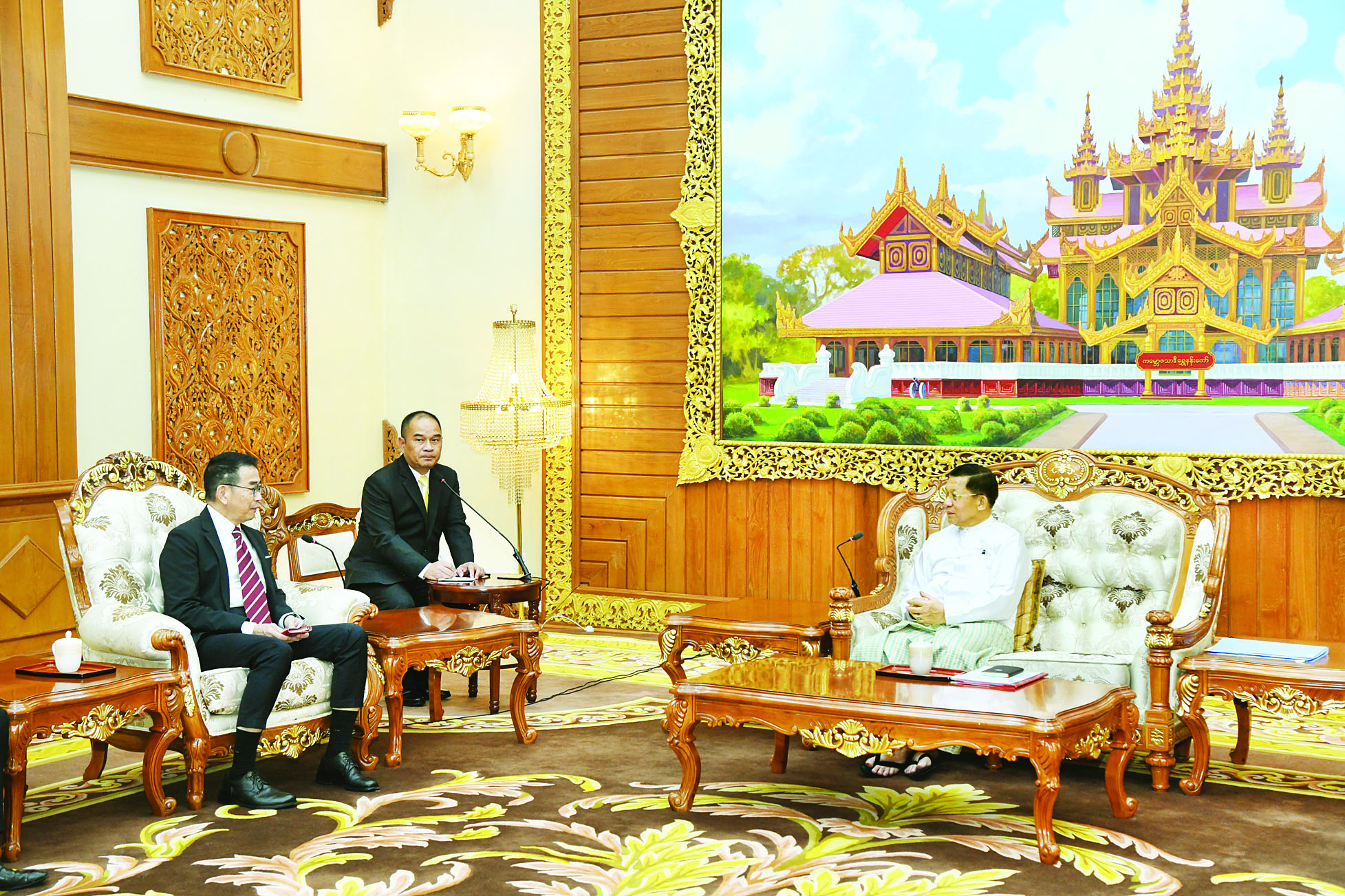 နိုင်ငံတော်စီမံအုပ်ချုပ်ရေးကောင်စီ ဥက္ကဋ္ဌ နိုင်ငံတော်ဝန်ကြီးချုပ် ဗိုလ်ချုပ်မှူးကြီး မင်းအောင်လှိုင်ထံသို့ ထိုင်းနိုင်ငံ နိုင်ငံခြားရေးဝန်ကြီး H.E. Mr. Maris Sangiampongsa ဦးဆောင်သည့် ကိုယ်စားလှယ်အဖွဲ့က ယနေ့ နံနက်ပိုင်းတွင် နေပြည်တော်ရှိ ဘုရင့်နောင်ရိပ်သာ ဧည့်ခန်းမဆောင်၌ လာရောက်ဂါရဝပြု တွေ့ဆုံသည်။