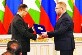 ၎င်းနောက် နိုင်ငံတော်စီမံအုပ်ချုပ်ရေးကောင်စီ ဥက္ကဋ္ဌ နိုင်ငံတော်ဝန်ကြီးချုပ်နှင့် ရုရှားဖက်ဒရေးရှင်းနိုင်ငံသမ္မတတို့သည် နှစ်နိုင်ငံတွေ့ဆုံဆွေးနွေးပွဲကို တက်ရောက်သည်။