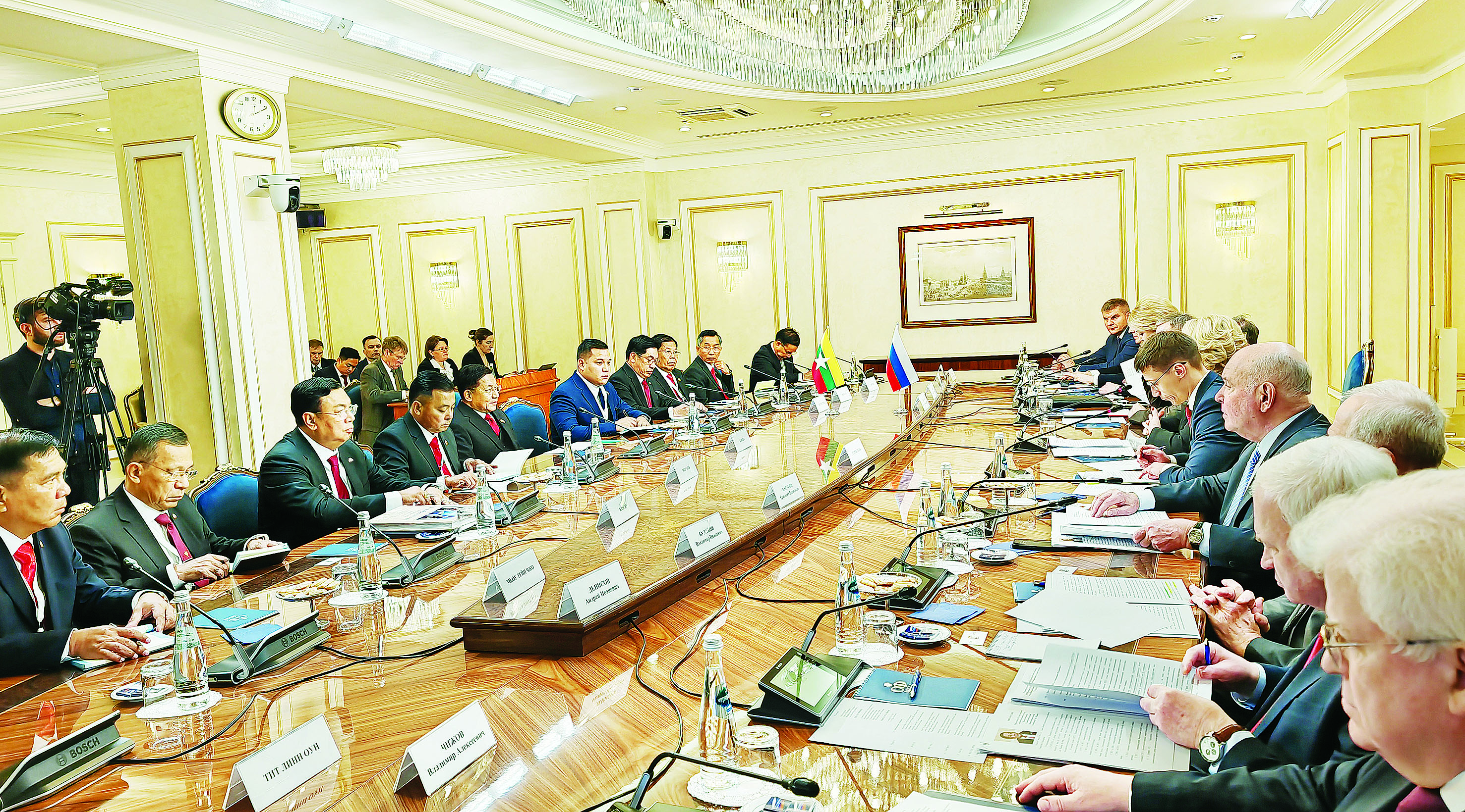 ဆက်လက်၍ ဖက်ဒရယ်ကောင်စီလွှတ်တော် အစည်းအဝေးခန်းမ၌ တွေ့ဆုံပွဲကို ကျင်းပပြုလုပ်၍ လွှတ်တော်နှစ်ရပ်အကြား ပူးပေါင်းဆောင်ရွက်ရေးဆိုင်ရာကိစ္စရပ်များ၊ နှစ်နိုင်ငံသံတမန်ဆက်ဆံရေးဆိုင်ရာ ကိစ္စရပ်များ၊ အစိုးရအချင်းချင်း၊ နိုင်ငံအချင်းချင်း၊ ပြည်သူအချင်းချင်း ဆက်ဆံရေးတိုးတက် ကောင်းမွန်မှုအခြေအနေများ၊ လွှတ်တော်နှစ်ရပ်အကြား အပြန်အလှန်ပူးပေါင်းဆောင်ရွက်နိုင်မှု အခြေအနေများ၊ နှစ်နိုင်ငံအကြား ဆက်ဆံရေးနှင့် ပူးပေါင်းဆောင်ရွက်မှုများ ဆက်လက်တိုးမြှင့် ဆောင်ရွက်သွားမည့်အခြေအနေများ၊ လွှတ်တော်နှစ်ရပ်အကြား ချစ်ကြည်ရေးခရီးစဉ်များ အပြန်အလှန်သွားရောက်ရေးဆိုင်ရာ ကိစ္စရပ်များ၊ နိုင်ငံတော်စီမံအုပ်ချုပ်ရေးကောင်စီအနေဖြင့် လွတ်လပ်ပြီးတရားမျှတသည့် ပါတီစုံဒီမိုကရေစီအထွေထွေ ရွေးကောက်ပွဲကျင်းပနိုင်ရေး ကြိုတင်ပြင်ဆင်ဆောင်ရွက်လျက်ရှိသည့် အခြေအနေများ၊ မြန်မာနိုင်ငံတွင် ရွေးကောက်ပွဲကျင်းပချိန်၌ ရုရှားဖက်ဒရေးရှင်း နိုင်ငံဖက်ဒရယ်ကောင်စီလွှတ်တော်မှ လေ့လာရေးအဖွဲ့များ စေလွှတ်ပေးသွားမည့် အခြေအနေများ၊ မြန်မာနိုင်ငံ၌ လွှတ်တော်ပြန်လည်ဖွဲ့စည်းပြီးချိန်၌ လွှတ်တော်နှစ်ရပ်အကြား ဆက်ဆံရေးကို ပိုမိုတိုးမြှင့်ဆောင်ရွက်သွားမည့် အခြေအနေများနှင့်ပတ်သက်၍ ရင်းနှီးပွင့်လင်းစွာဖြင့် အမြင်ချင်းဖလှယ်ဆွေးနွေးကြသည်။