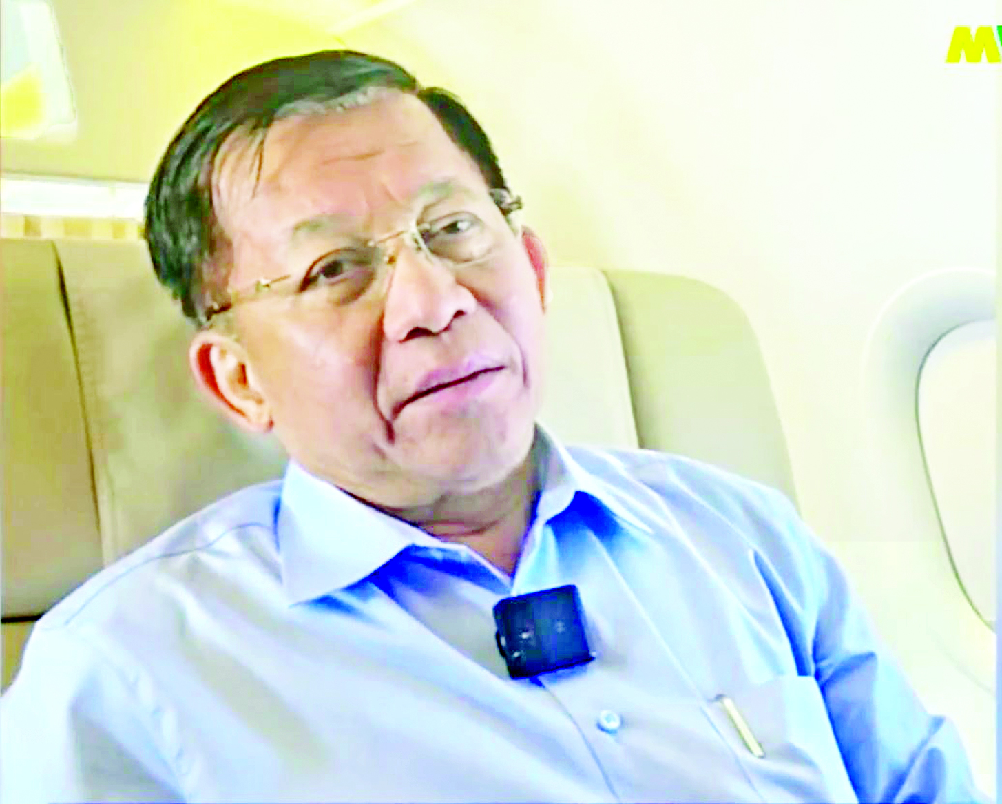 ထိုသို့ပြန်လည်ထွက်ခွာလာစဉ် အထူးလေယာဉ်ပေါ်၌ နိုင်ငံတော်စီမံအုပ်ချုပ်ရေး ကောင်စီဥက္ကဋ္ဌ နိုင်ငံတော်ဝန်ကြီးချုပ် ဗိုလ်ချုပ်မှူးကြီးမင်းအောင်လှိုင်သည် မီဒီယာများ၏ သီးသန့်မေးမြန်းမှုများကို ပြန်လည်ဖြေကြားခဲ့သည်။
