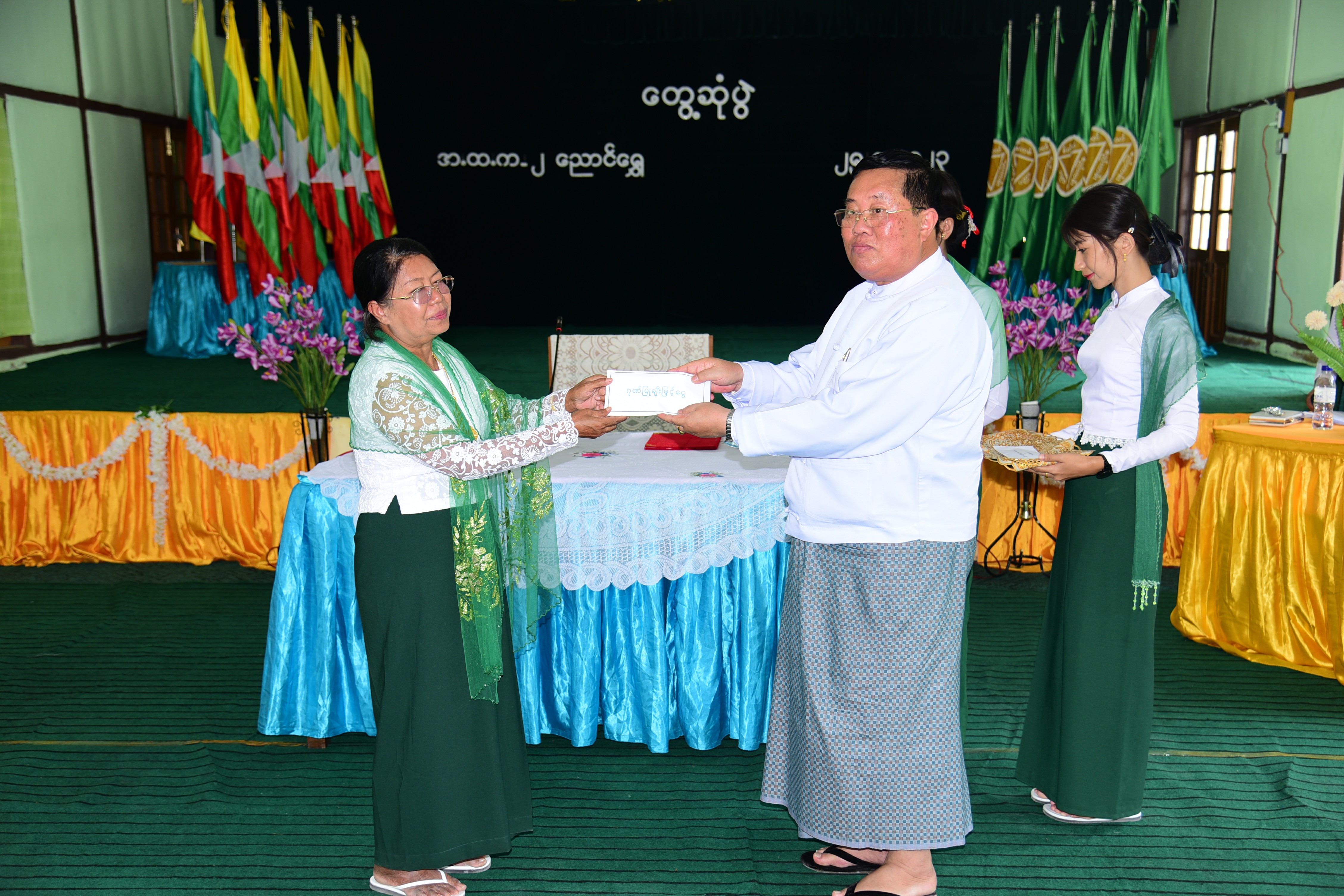 ထို့နောက် ညောင်ရွှေမြို့အမှတ်(၂) အခြေခံပညာအထက်တန်းကျောင်း၊ ကျောင်းအုပ်ဆရာမကြီး ဒေါ်လှလှထွန်း မှ ကျောင်းနှင့်ပတ်သက်၍ ရှင်းလင်းတင်ပြပြီး ကျောင်းအကျိုးတော်ဆောင်နှင့် အခြခံမူလတန်း၊ အခြေခံပညာအထက်တန်း ကျောင်း(ခွဲ)မှ ကျောင်းအုပ်ဆရာကြီး၊ ဆရာမကြီးများမှ ကျောင်းအတွက် လိုအပ်ချက်များ ရှင်းလင်းတင်ပြကြရာ နိုင်ငံတော် စီမံအုပ်ချုပ်ရေးကောင်စီအဖွဲ့ဝင် ဒေါက်တာကျော်ထွန်းက ကျောင်းလိုအပ်ချက်များ အပေါ်ပြန်လည်ဖြည့်စွက်ပြောကြားပြီး နိုင်ငံတော်စီမံအုပ်ချုပ်ရေးကောင်စီအဖွဲ့ဝင် ဒေါက်တာကျော်ထွန်းက ညောင်ရွှေမြို့အမှတ်(၂) အခြေခံပညာအထက်တန်း ကျောင်းဖွံ့ဖြိုးရေးအတွက် ထောက်ပံ့ငွေကျပ်(၅)သိန်း၊ ရှမ်းပြည်နယ်အစိုးရအဖွဲ့၊ ပြည်နယ်ဝန်ကြီးချုပ် ဦးအောင်ဇော်အေးက ထောက်ပံ့ငွေကျပ် (၅)သိန်းပေးအပ်ရာ ကျောင်းအုပ်ဆရာမကြီးနှင့် ကျောင်းအကျိုးတော်ဆောင်မှ လက်ခံရယူပြီး နိုင်ငံတော် စီမံအုပ်ချုပ်ရေးကောင်စီအဖွဲ့ဝင် ဒေါက်တာကျော်ထွန်းက နိဂုံးချုပ်စကားပြောကြား၍ ဆရာ၊ ဆရာမ၊ ကျောင်းသား၊ ကျောင်းသူများအား ရင်းရင်းနှီးနှီးလိုက်လံနှုတ်ကြောင်း သိရသည်။