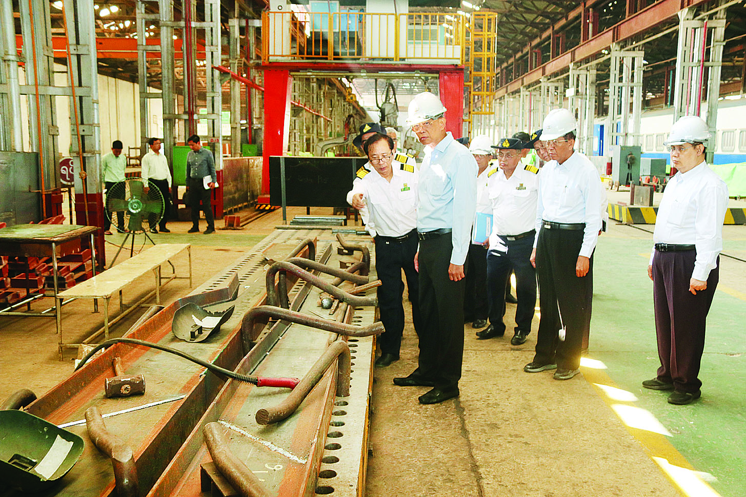 ဒုတိယဝန်ကြီးချုပ်နှင့် ပြည်ထောင်စုဝန်ကြီးသည် မတ် ၇ ရက်နံနက်ပိုင်းတွင် လူစီးတွဲနှင့် ကုန်တွဲစက်ရုံ (မြစ်ငယ်) စက်ရုံသို့ သွားရောက်ကြည့်ရှုစစ်ဆေးရာ အစည်းအဝေးခန်းမ၌ အထွေထွေမန်နေဂျာ (စက်ရုံ) က လုပ်ငန်းဆောင်ရွက်မှုအခြေအနေများကို ရှင်းလင်းတင်ပြပြီး ပြည်ထောင်စုဝန်ကြီးက စက်ရုံအနေဖြင့် လူစီးတွဲနှင့် ကုန်တွဲများအား လမ်းပိုင်းများတွင် အသုံးပြုရန် လိုအပ်ချက်နှင့်ဝန်ထမ်းများ၏ စွမ်းဆောင်နိုင်မှုအပေါ်မူတည်၍ပြင်ဆင်ရေး၊ ကုန်သေတ္တာတင်ဆောင်နိုင်သောတွဲ (Flat Wagon) များအပါအဝင် ခရီးသည်နှင့် ကုန်စည်သယ်ယူပို့ဆောင်မှုပမာဏကို အမြဲမပြတ်လေ့လာသုံးသပ်၍ ဖြည့်တင်းရေး၊ စက်ရုံအတွက် ဝန်ထမ်းများဖြည့်တင်းရေးနှင့် အရည်အသွေးမြင့်မားစေရန် လေ့ကျင့်ပျိုးထောင်ရေးမှာကြားပြီး စက်ရုံအတွင်း လူစီးတွဲများနှင့်ကုန်တွဲများ ပြုပြင်မှု၊ တွဲအရန်ပစ္စည်းများထုတ်လုပ်မှု၊ ရိုးရိုးတန်း လူစီးတွဲများအား စာတိုက်တွဲများအဖြစ် ပြောင်းလဲမွမ်းမံတည်ဆောက်မှု၊ ကုန်သေတ္တာတင် တွဲတည်ဆောက်ရေးအတွက် လေ့လာဆောင်ရွက်နေမှုများကို လှည့်လည်ကြည့်ရှုစစ်ဆေးခဲ့ကာ ဝန်ထမ်းများအတွက် စားသောက်ဖွယ်ရာများကိုပေးအပ်သည်။