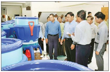 မွန်းလွဲပိုင်းတွင် ဗိုလ်ချုပ်ကြီး တင်အောင်စန်းနှင့်အဖွဲ့သည် အစိုးရအဖွဲ့ရုံး၌သမဝါယမနှင့် ကျေးလက်ဖွံ့ဖြိုးရေးဝန်ကြီးဌာန၊ ကျေးလက်ဒေသဖွံ့ဖြိုးတိုးတက်ရေး ဦးစီးဌာနက မုန်တိုင်းဒဏ်ခံရသော ပြည်သူများအတွက် သောက်သုံးရေသန့်ရရှိရေး လျှပ်စစ်ဓာတ်အား သုံးစွဲရန်မလိုဘဲရွှေ့ပြောင်းသယ် ယူအသုံးပြုနိုင်သည့် Life Straw ရေသန့်စင်စက်များအားကြည့်ရှု စစ်ဆေးသည်။