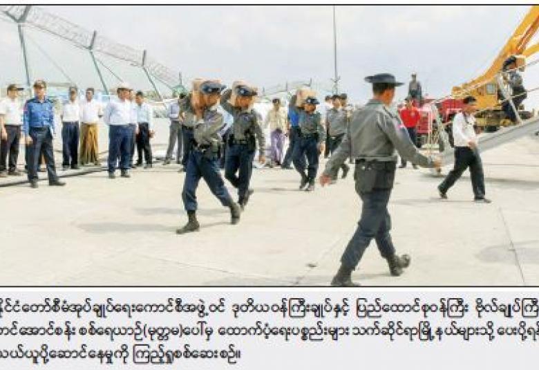 ထို့နောက် စစ်တွေမြို့ဆိပ်ကမ်းသို့ ရောက်ရှိနေသည့် စစ်ရေယာဉ်(မုတ္တမ) ပေါ်မှထောက်ပံ့ရေးပစ္စည်းများအားသက်ဆိုင်ရာမြို့နယ်များသို့ပေးပို့ရန် သယ်ယူပို့ဆောင်နေမှုကို ကြည့်ရှုစစ်ဆေးကာ ပစ္စည်သယ်ချမှုပိုမိုမြန်ဆန်ရေး လိုအပ်သောအင်အား ထပ်မံဖြည့်တင်းဆောင်ရွက်ရန် စီစဉ်မှာကြားခဲ့သည်။