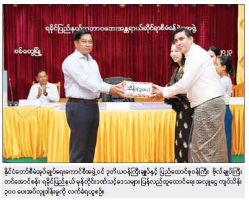 ထို့နောက် ဗိုလ်ချုပ်ကြီး တင်အောင်စန်းသည် ရခိုင် ပြည်နယ်အစိုးရအဖွဲ့ရုံး၌ ကျင်းပ သည့် ရခိုင်ပြည်နယ် မုန်တိုင်းဒဏ် သင့်ဒေသများ ပြန်လည်ထူထောင်ရေး အလှူငွေပေးအပ်လှူဒါန်းပွဲသို့ တက်ရောက်၍ အလှူရှင် Myo Naing- Nine Group Co.,Ltd (Yangon)မှ ပေးအပ်လှူဒါန်း သည့် အလှူငွေကျပ်သိန်း ၃၀၀ ကို လက်ခံရယူပြီး ဂုဏ်ပြုမှတ်တမ်းလွှာ ပြန်လည်ပေးအပ်ကာ ပြည်နယ်ဝန်ကြီးချုပ်က ကျေးဇူး တင်စကား ပြောကြားသည်။