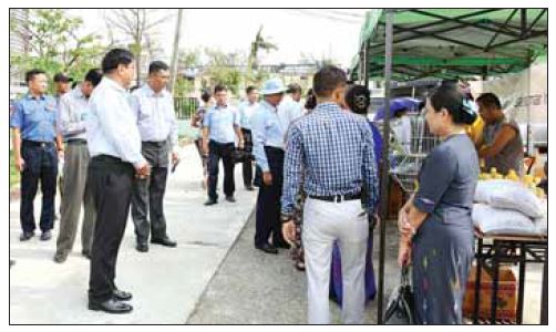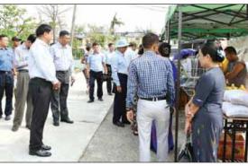 ဆက်လက်၍ ကျောင်းကြီးလမ်းနှင့် မင်းဘာကြီးလမ်း၌ စုပေါင်းသန့်ရှင်းရေး ဆောင်ရွက်နေကြသည့် အဖွဲ့များကို SKY NET ၊ မြန်မာနိုင်ငံ လိုင်စင်ရကန်ထရိုက်တာများအသင်း၊ မြန်မာလိုင်စင်ရ ကန်ထရိုက်တာများအများနှင့် သက်ဆိုင်သောကုမ္ပဏီလီမိတက်၊ မြန်မာ-အိန္ဒိယ-တရုတ် ချစ်ကြည်ရေးနှင့် စီးပွားရေးဖွံ့ဖြိုးတိုးတက်ရေးအသင်း၊ ဘာသာစုံမိတ်ဆွေများ အဖွဲ့တို့မှလှူဒါန်းသည့် ဒံပေါက်ထုပ်များ ဝေငှပေးနေမှုကို သွားရောက်ကြည့်ရှု အားပေးပြီး ပါဝင်ကူညီဝေငှပေးသည်။