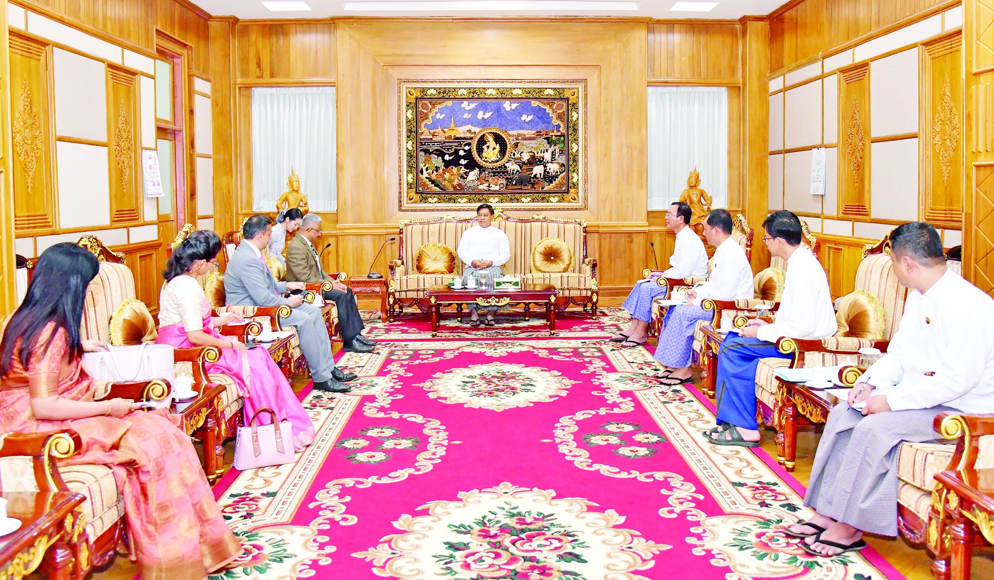 နိုင်ငံတော်စီမံအုပ်ချုပ်ရေးကောင်စီအဖွဲ့ဝင် ဒုတိယဝန်ကြီးချုပ်နှင့် နိုင်ငံတော်ဝန်ကြီးချုပ်ရုံး ပြည်ထောင်စုဝန်ကြီး ဗိုလ်ချုပ်ကြီး တင်အောင်စန်းသည် မြန်မာနိုင်ငံဆိုင်ရာ အိန္ဒိယနိုင်ငံ သံအမတ်ကြီး H.E. Mr. Abhay Thakur အား ယနေ့မွန်းလွဲပိုင်းတွင် နိုင်ငံတော်စီမံအုပ်ချုပ်ရေးကောင်စီရုံး ဧည့်ခန်းမ၌ လက်ခံတွေ့ဆုံသည်။