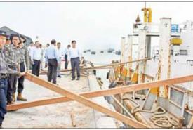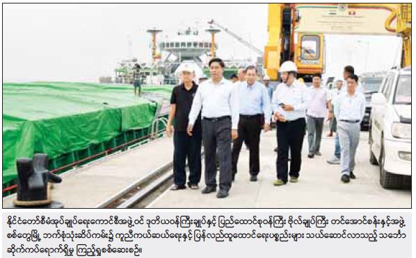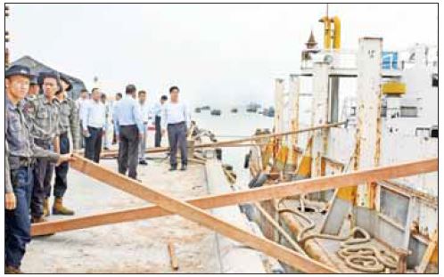 ဆက်လက်၍ ဗိုလ်ချုပ်ကြီး တင်အောင်စန်းနှင့်အဖွဲ့သည် စစ်တွေမြို့ ဘက်စုံသုံးဆိပ်ကမ်း၌ ကူညီကယ်ဆယ်ရေးနှင့် ပြန်လည်ထူထောင်ရေးပစ္စည်းများ သယ်ဆောင်လာသည့် MCL – 5 Yangon သင်္ဘောဆိုက်ကပ်ရောက်ရှိမှု၊ For Tune သင်္ဘောပေါ်မှ လျှပ်စစ်ပိုင်းဆိုင်ရာ ပြန်လည်ထူထောင်ရေးပစ္စည်းများအား စက်ယန္တရားကြီးများဖြင့် မော်တော်ယာဉ်များပေါ်သို့ တင်ဆောင်နေမှု၊ မြန်မာ့ဆိပ်ကမ်းအာဏာပိုင်ဖောင်တော်ကြီး ဆိပ်ခံတံတား၌ AQUARIUS သင်္ဘောပေါ် မှ ပြန်လည်ထူထောင်ရေးလုပ်ငန်းများတွင် အသုံးပြုမည့် သစ်ခွဲသားများအား မော်တော်ယာဉ်များပေါ်သို့ မြန်မာနိုင်ငံရဲတပ်ဖွဲ့ဝင်များက တင်ဆောင်ပေးနေမှုကို ကြည့်ရှုစစ်ဆေးသည်။