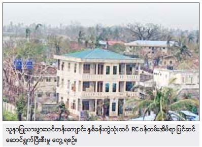 ဆောက်လုပ်ရေးဝန်ကြီးဌာန အနေဖြင့် ရခိုင်ပြည်နယ် စစ်တွေမြို့၌ မိုခါမုန်တိုင်းဒဏ်ကြောင့် ထိခိုက်ပျက်စီးခဲ့သည့် အဆောက်အဦများ ပြုပြင်ခြင်းလုပ်ငန်းကို အဆောက်အဦဦးစီးဌာန အဆောက်အဦအထူးအဖွဲ့ ၄ ဖွဲ့ဖြင့် မေ ၁၈ ရက်မှ စတင်တာဝန်ယူ ပြင်ဆင်ဆောင်ရွက်လျက်ရှိပြီး စစ်တွေပြည်သူ့ဆေးရုံကြီးအတွင်းရှိ ဆေးကုသဆောင်များ၊ ဆေးသိုလှောင်ရုံ၊ ရုံးနှင့် ဝန်ထမ်းအိမ်ရာများ စုစုပေါင်း ၂၄ ဆောင်ကို ပြင်ဆင်ဆောင်ရွက်ခဲ့ရာ ယနေ့အထိ ကျောက်ကပ်ဆေးဆောင်၊ မွေးခန်းနှင့် မွေးလူနာဆောင်၊ ခွဲစိတ်ခန်းနှင့် ခွဲစိတ်လူနာဆောင်၊ ဆေးသိုလှောင်ရုံ၊ သွေးလှူဘဏ်၊ ငှက်ဖျားရောဂါတိုက်ဖျက်ရေးရုံး၊ အောက်ဆီဂျင်စက်ရုံ၊ မီးစက်ရုံ၊ ရင်ခွဲရုံ စုစုပေါင်း အဆောင်ကိုးဆောင်ကို ပြင်ဆင်ဆောင်ရွက်ပြီးဖြစ်သည်။
