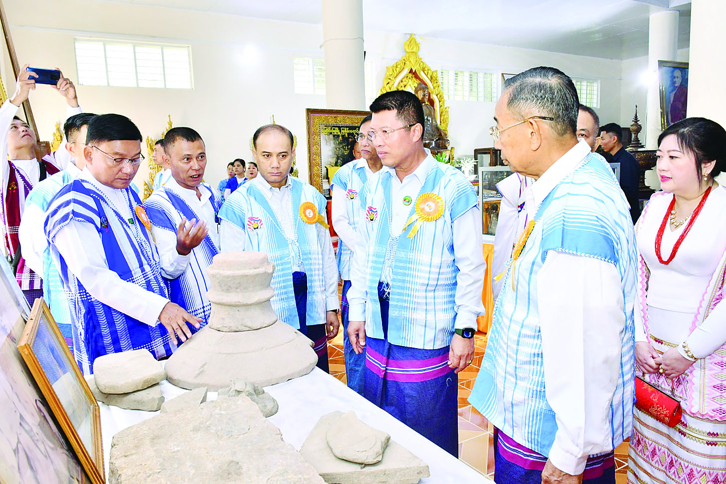 ဦးစွာ ပြခန်းအား နိုင်ငံတော်စီမံအုပ်ချုပ်ရေးကောင်စီအဖွဲ့ဝင်သည် ဝန်ကြီးချုပ်၊ တိုင်းမှူး၊ ပြခန်းအလှူရှင်များနှင့်အတူပြခန်းများကို ဖဲကြိုးဖြတ်ဖွင့်လှစ်ပေးပြီး ကမ္ဗည်းမော်ကွန်းအား အမွှေးနံ့သာရည်များ ပက်ဖျန်းပေးသည်။