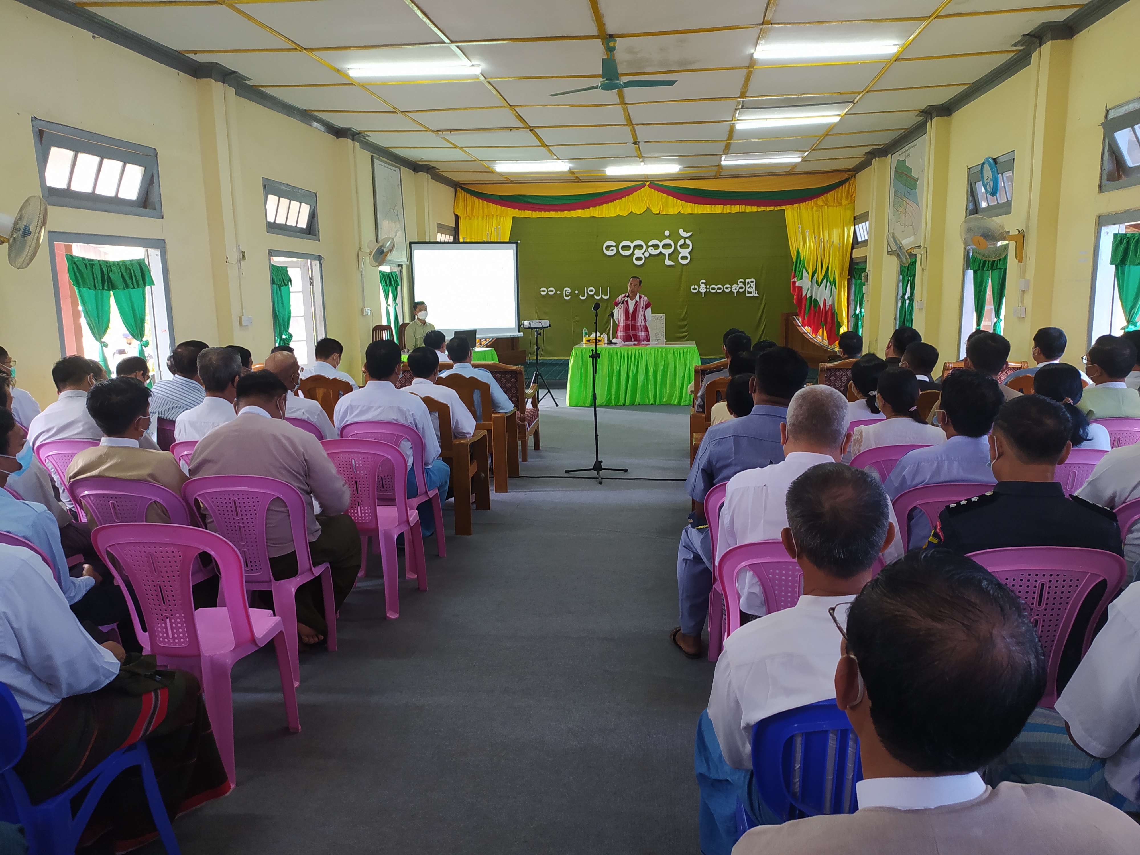 ယင်းနောက် နိုင်ငံတော်စီမံအုပ်ချုပ်ရေးကောင်စီအဖွဲ့ဝင် မန်းငြိမ်းမောင်က နိုင်ငံတော် အစိုးရ၏ ရှေ့ဆက်လုပ်ဆောင်မည့် လုပ်ငန်းစဉ်များ၊ ၂၀၂၃ ခုနှစ်တွင် ကျင်းပ ပြုလုပ်ပေးမည့် ရွေးကောက်ပွဲတွင် မြို့နယ်အလိုက် လွပ်လပ်၍ သန့်ရှင်းမျှတသော ရွေးကောက်ပွဲဖြစ်စေရန် ဒေသအာဏာပိုင်များ ဦးဆောင်၍ ရပ်ကွက်/ ကျေးရွာအုပ်ချုပ်ရေးမှူးများက အဂတိတရားကင်းကင်း၊ ဘက်လိုက်မှုကင်းကင်းဖြင့် ဆောင်ရွက်ကြရန်ဖြစ်ကြောင်း၊ လာမည့်ရွေးကောက်ပွဲတွင် ရွေးချယ်လိုက်သည့် အစိုးရသည် သန့်ရှင်းတရားမျှတသည့် အစိုးရဖြစ်အောင်၊ နိုင်ငံခေါင်းဆောင်များ ပေါ်ထွက်အောင် ရွေးကောက်တင်မြှောက်ကြပါဟု ပြောကြားသည်။